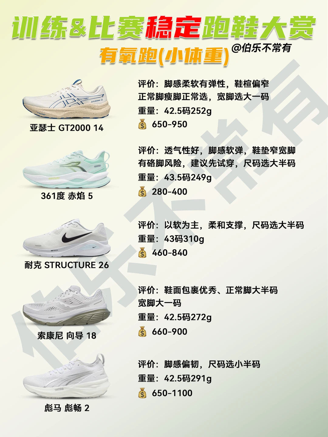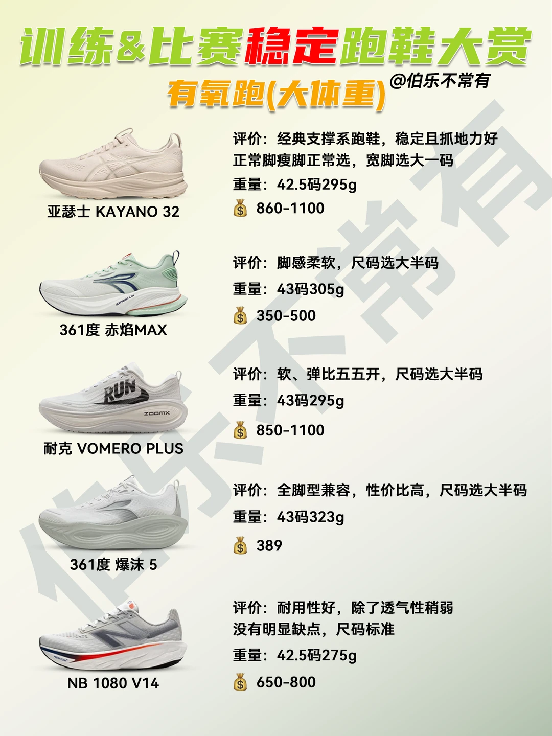本期就推荐一些,稳定性靠谱的跑鞋。不论是训练还是比赛,都能矫正力线,减少外翻的风险!