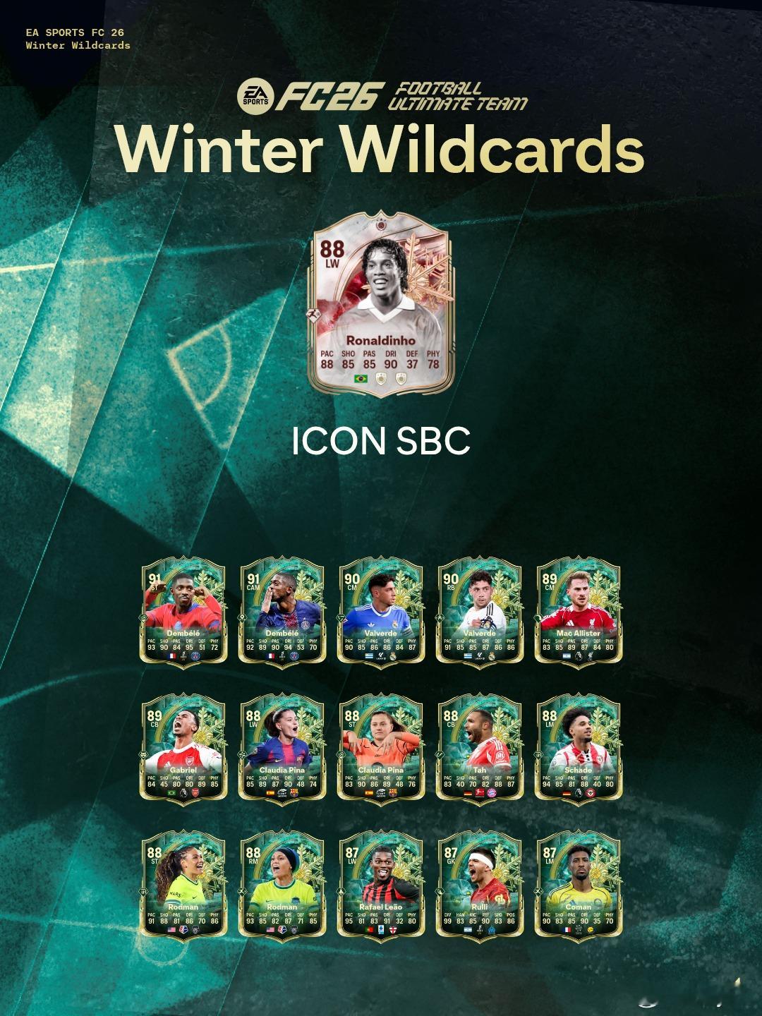12月20日新增SBC:• Ronaldinho• 冬季外卡挑战 1• 83+ TOTW 升级• Alexander IsakFC26
