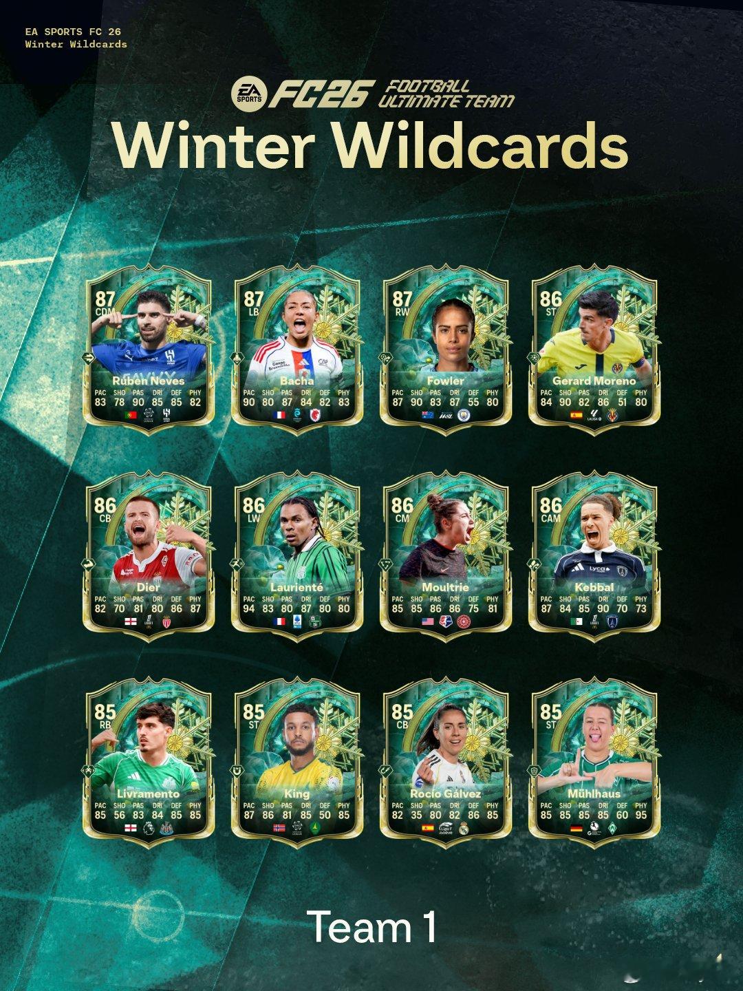 Winter Wildcard冬季外卡第一阵容球员正式数据。FC26