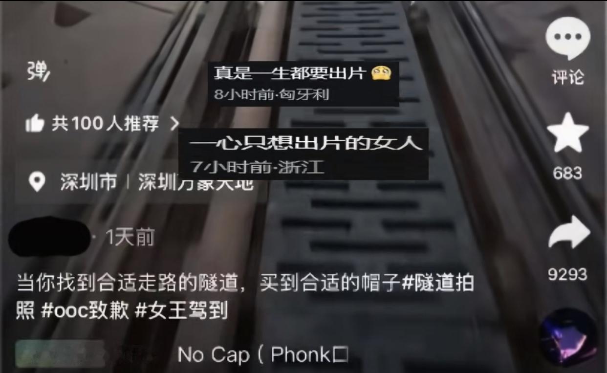 一生只想出片的女人为了拍氛围感大片,连封闭施工的地铁隧道都闯。 起因是一女子为了拍摄出“氛围感大片”,在没有获得深圳地铁建设集团许可的情况下,就进去入深圳在建地铁22号线隧道施工现场进行拍摄视频,还在发布的视频配文中炫耀“当你找到合适走路的隧道,买到合适的帽子”。 她是拍舒服了,但是却连累好些人不仅年终奖奖没了,还有被集团追责。 为了点流量什么事都干的出来,这下好了,所里更有氛围感。