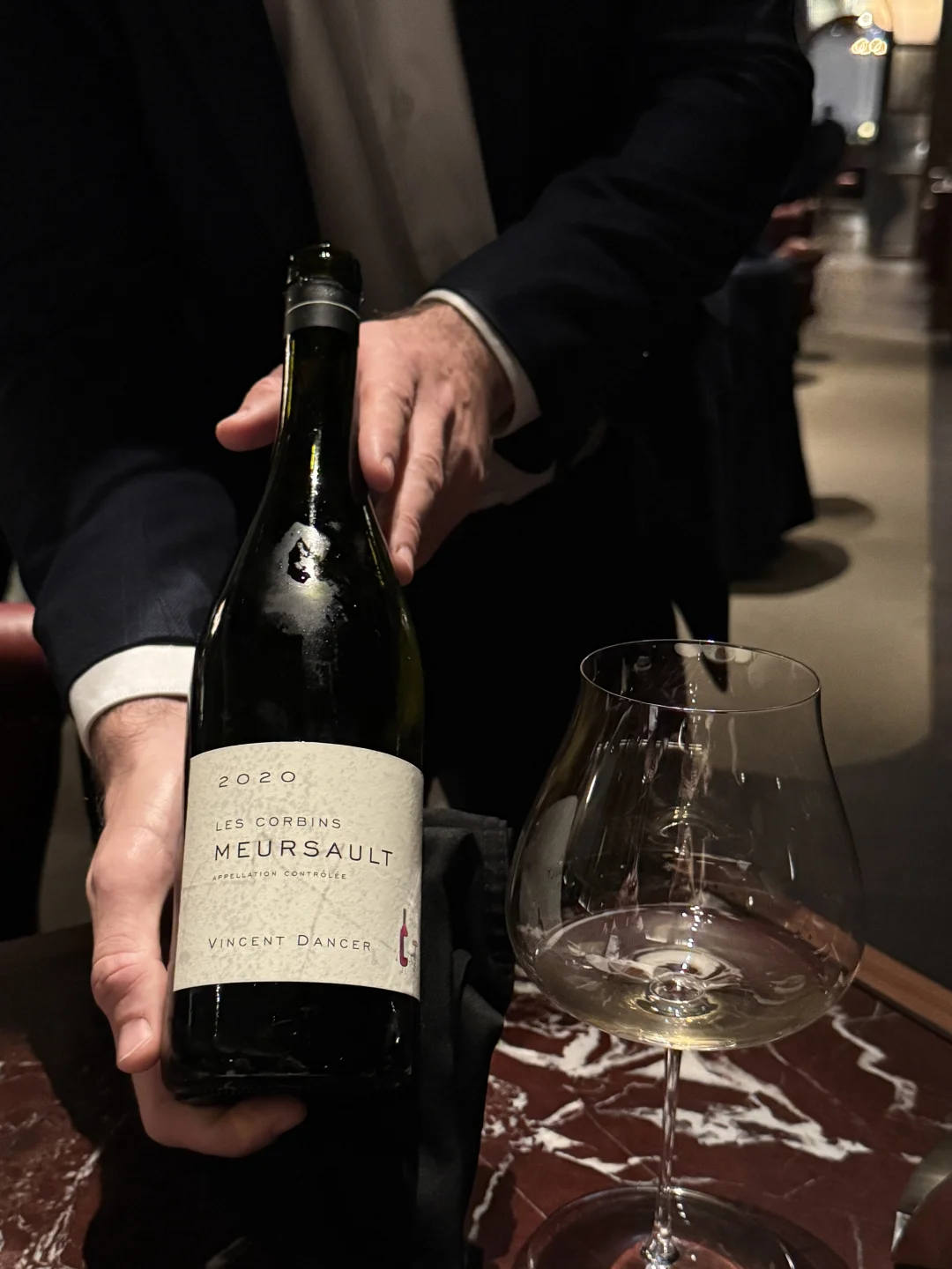 🍷搭配的2020年Vincent Dancer Meursault 绝了!开瓶就是柑橘和白花的清香,矿物感和酸度平衡得刚好,和前菜的鲜味儿碰撞,口感直接拉满🍇