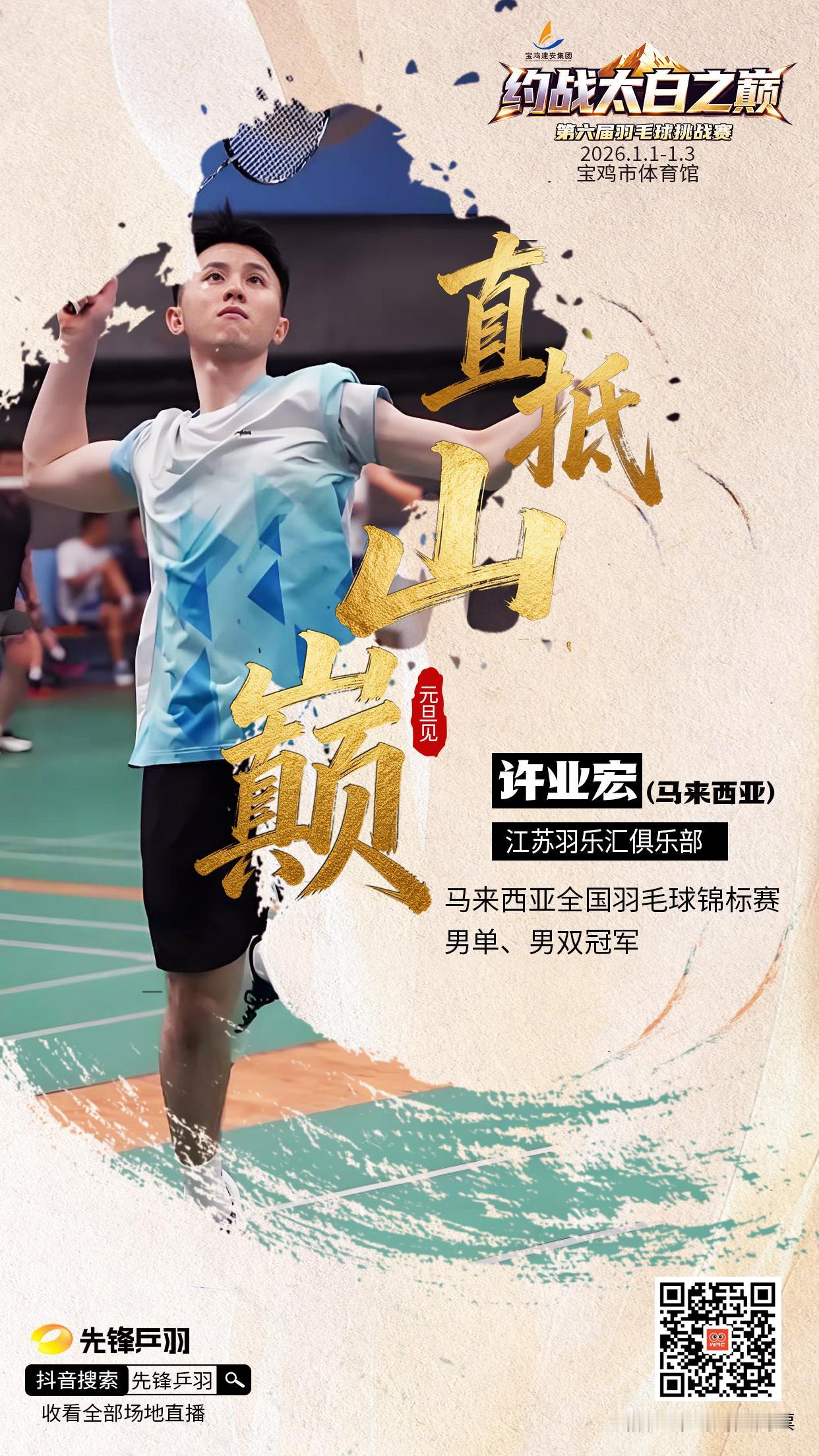 第六届“约战太白之巅”羽毛球挑战赛首批阵容揭晓! 李东根 詹俊为等顶尖高手汇聚 逐鹿太白 共竞传世何尊 巅峰之战 一触即发