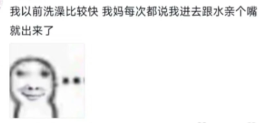 我以前洗澡比较快 ,我妈每次都说我进去跟水亲个嘴就出来了