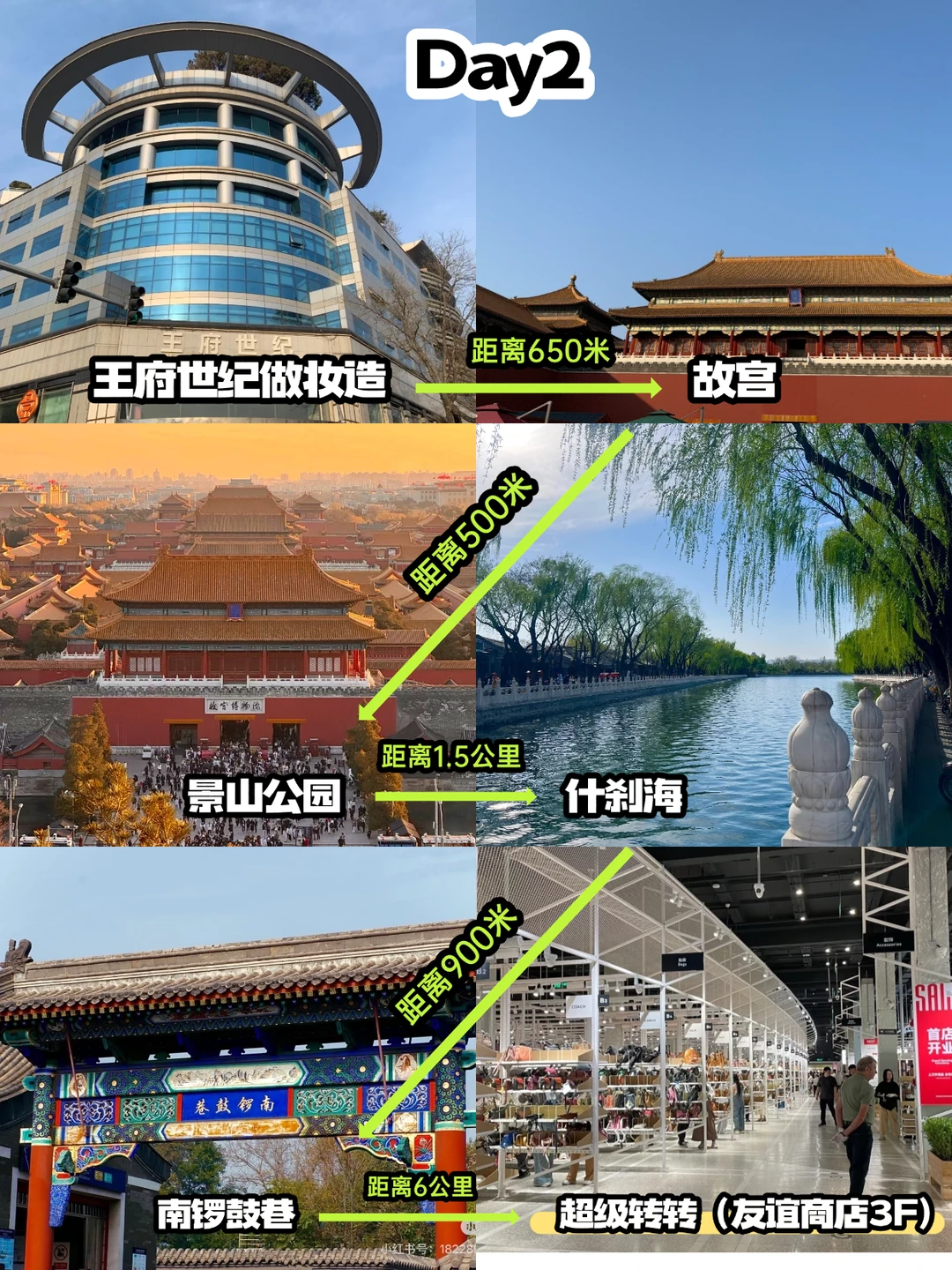 去故宫一定要提前做妆造拍照更出片!逛完故宫去景山公园看全景,晚上逛完南锣鼓巷,顺路去友谊商店3楼的超级转转逛一逛🛒