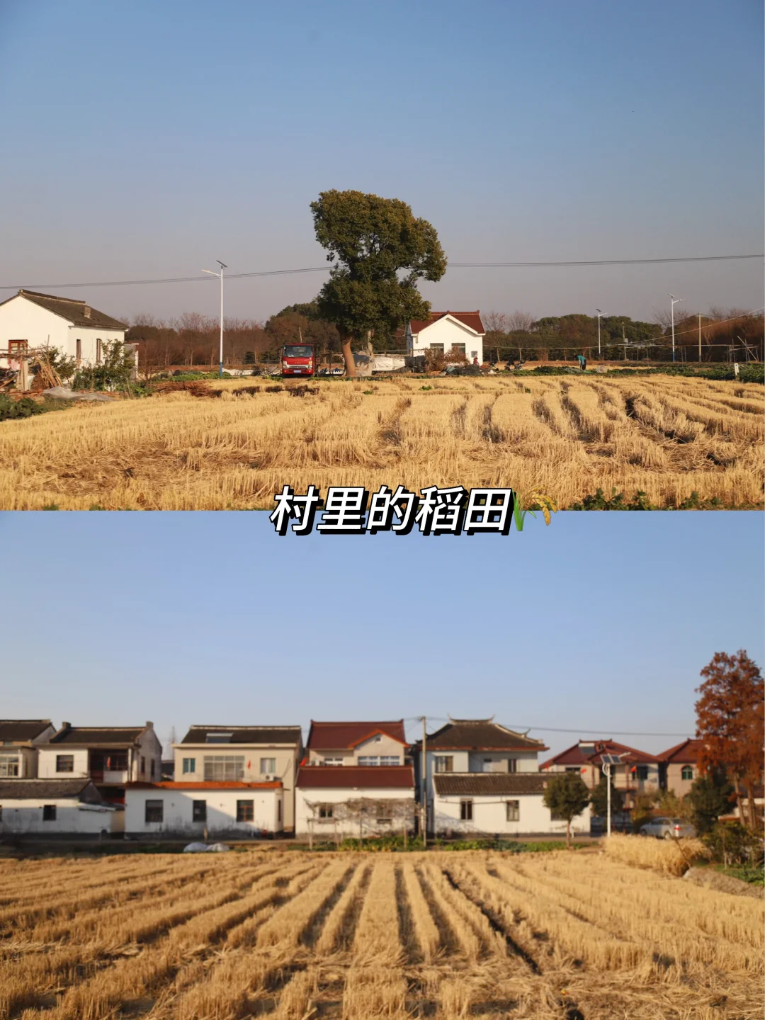 🌾村口一条小溪穿过,村里是金黄的稻田。