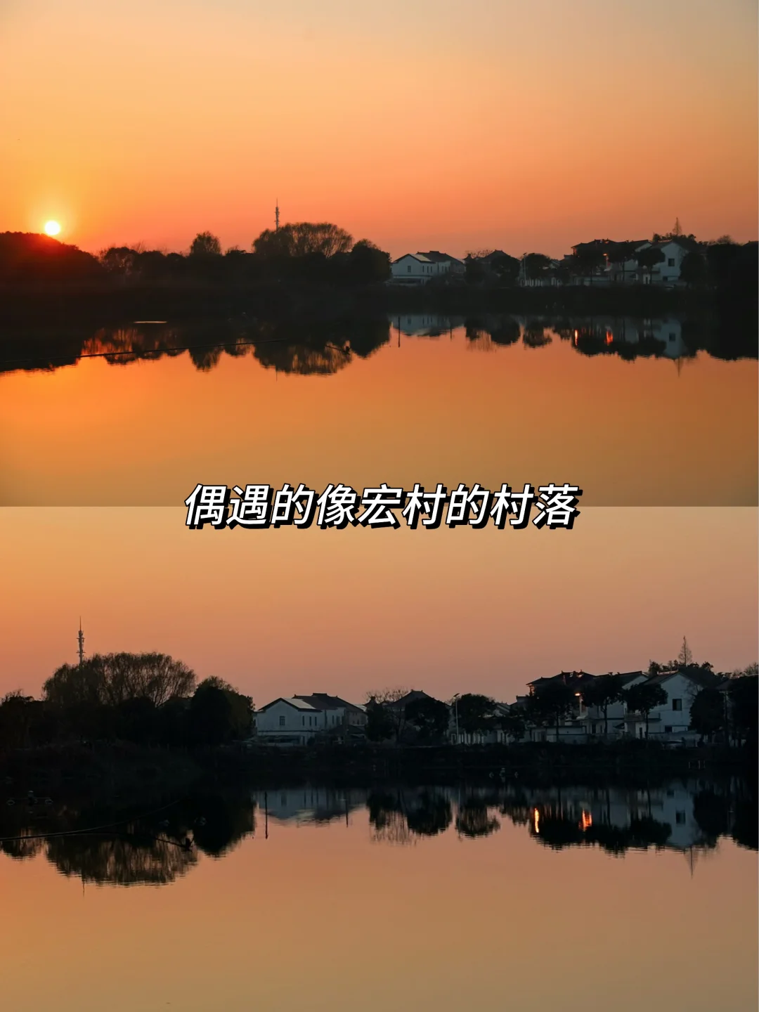 🌇出了小屋再5分钟的地方就是淀山湖,和真爱码头那边比起来这里没什么人,只有零星骑行🚴🏻♂️路过。安安静静的看了一场日落,偶然遇到捕鱼的渔船~回市区先环湖开了一段车,还遇到了一个神似宏村的村落~放松而完美的一天