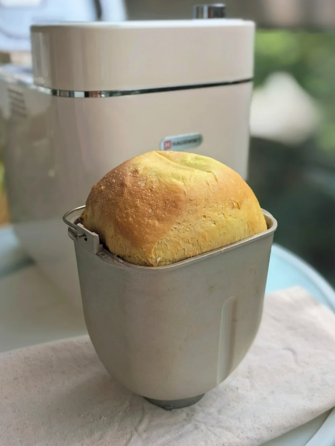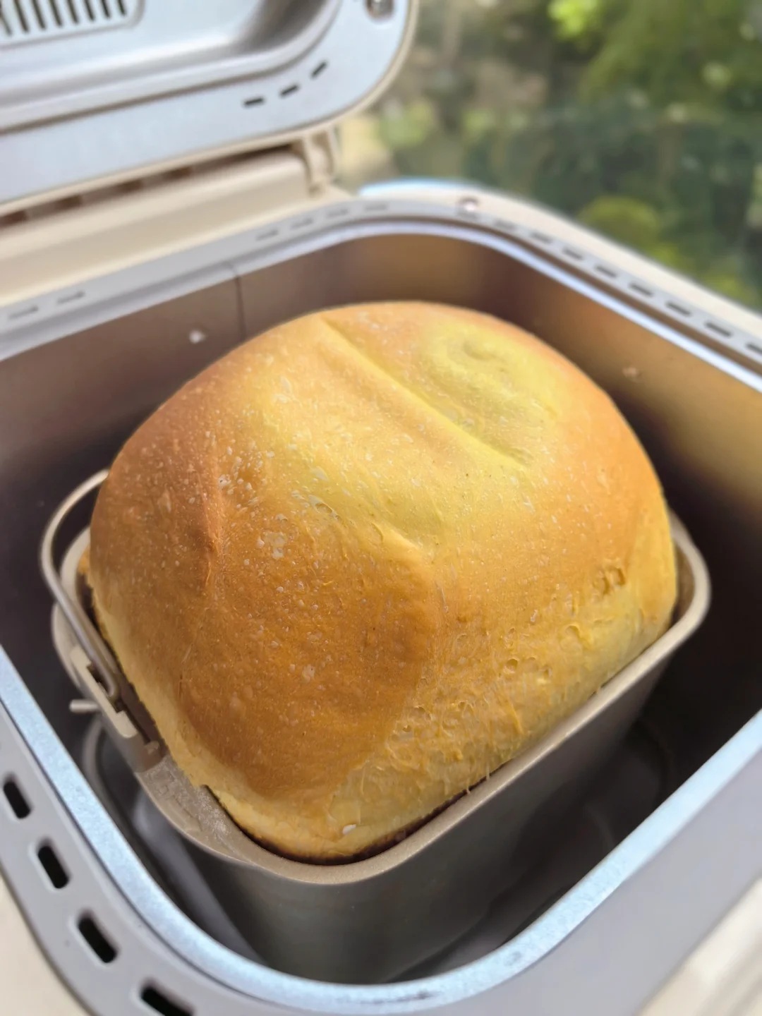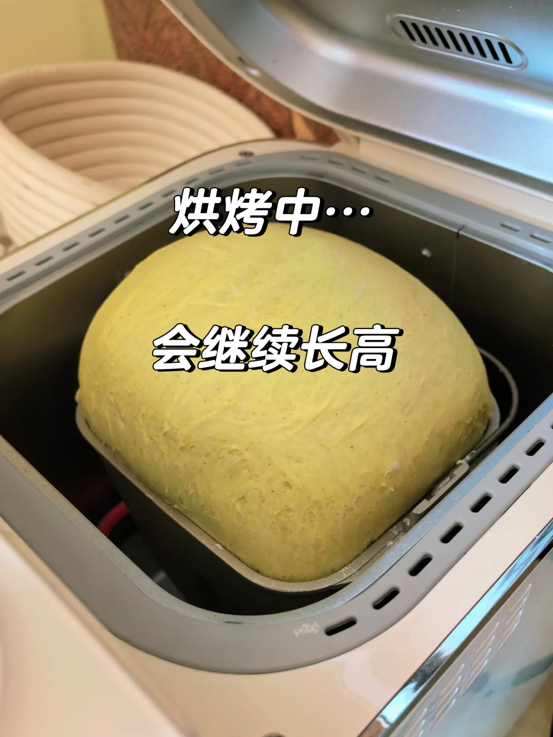 [庆祝R]天热了,可以使用“快速面包”菜单,2小时就完成了,如附图所示,注意,发酵到基本到桶的高度就可以烤了,烘烤时会继续长高,不要贪图爆桶而发过了。