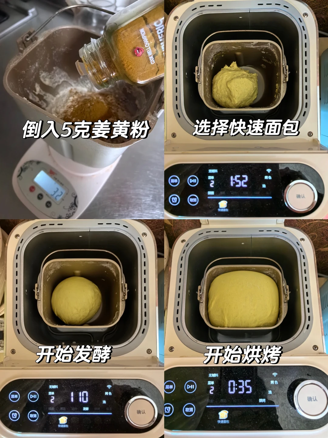 [庆祝R]姜黄粉可以直接冲泡饮用,制成黄金奶,而把它做进了面包,吃起来更方便。可以做出一款金灿灿的好看的健康营养面包,因为姜黄是脂溶性的,配上面包中的牛奶和黄油,还 能提高姜黄素的吸收率。