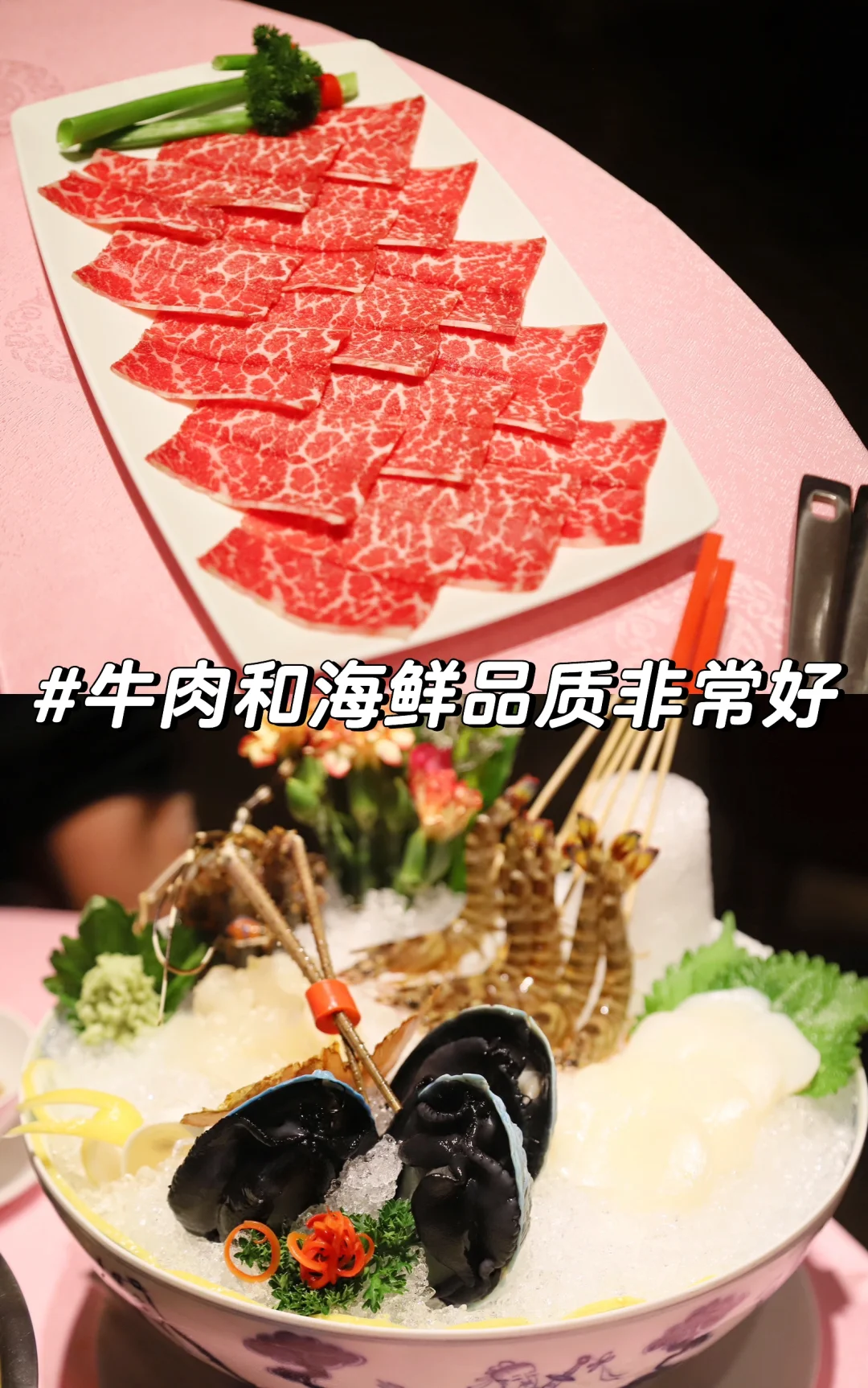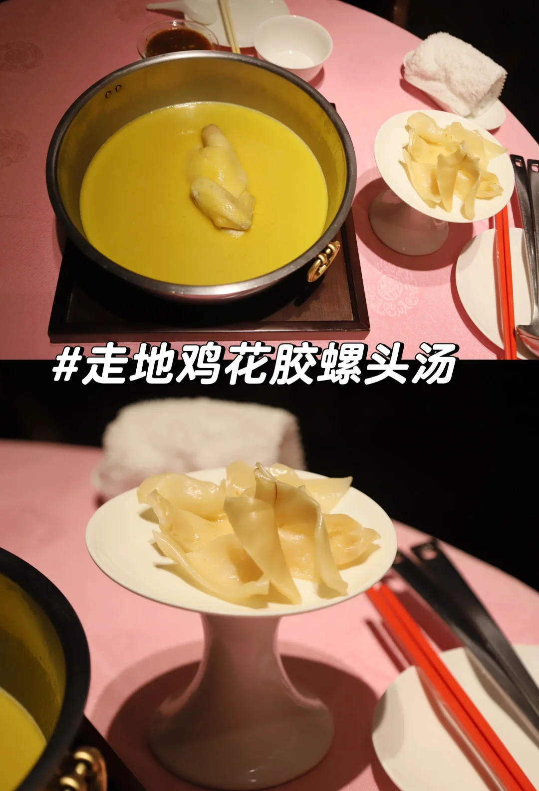 又到了吃火锅的时候,想吃港式火锅的不要错过这家天花板港式打边炉! - 📍楼上荟馆 布置装潢充满香港酒楼老钱风。连调料盘都很精致! [赞R][赞R][赞R][赞R]金牌走地鸡花胶螺头汤,熬的金黄,汤底非常香浓,每一口都是鲜味!鸡超级有鸡味!不愧是招牌! [赞R][赞R][赞R][赞R]前菜的椒盐九肚鱼非常有水准,鱼肉做到半生半熟的状态,皮衣炸的薄脆。第一次吃到这么好吃的! 🍲🍲🍲喝完香浓的鸡汤,就要上唰菜啦。牛肉纹路超好看。海鲜超级新鲜,都还在动着,第一次吃到新西兰黑金鲍鱼。