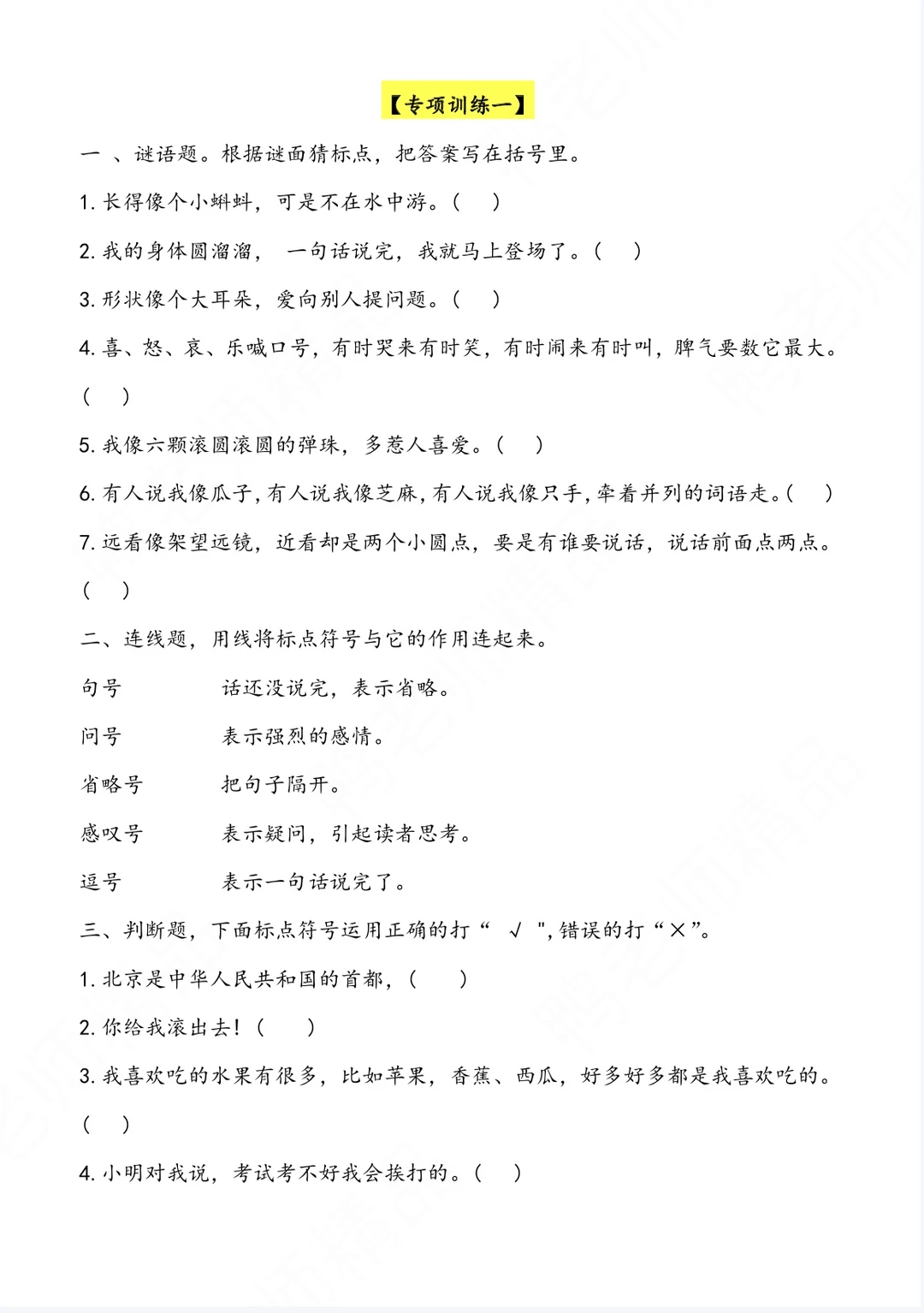 应粉丝要求,把去年暑假出的标点符号讲解的视频对应的知识点给整理出来了! 常考的标点符号详细讲解➕例题➕专项训练题,想让孩子掌握小学标点符号,这一套就够了!