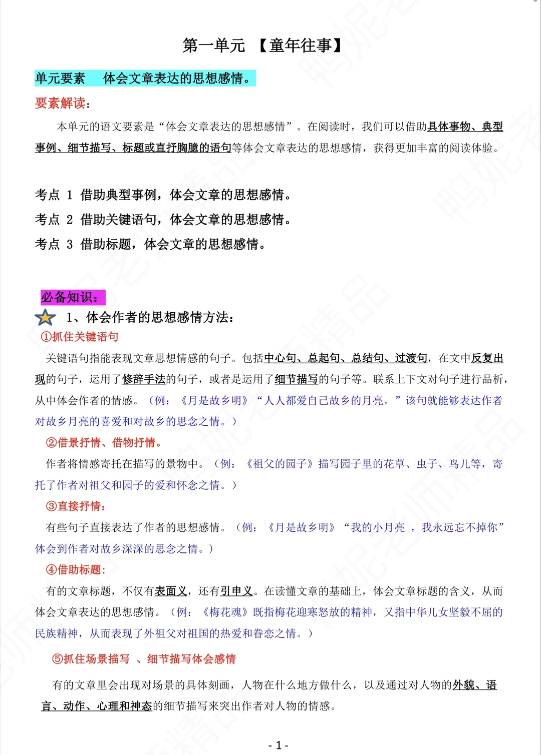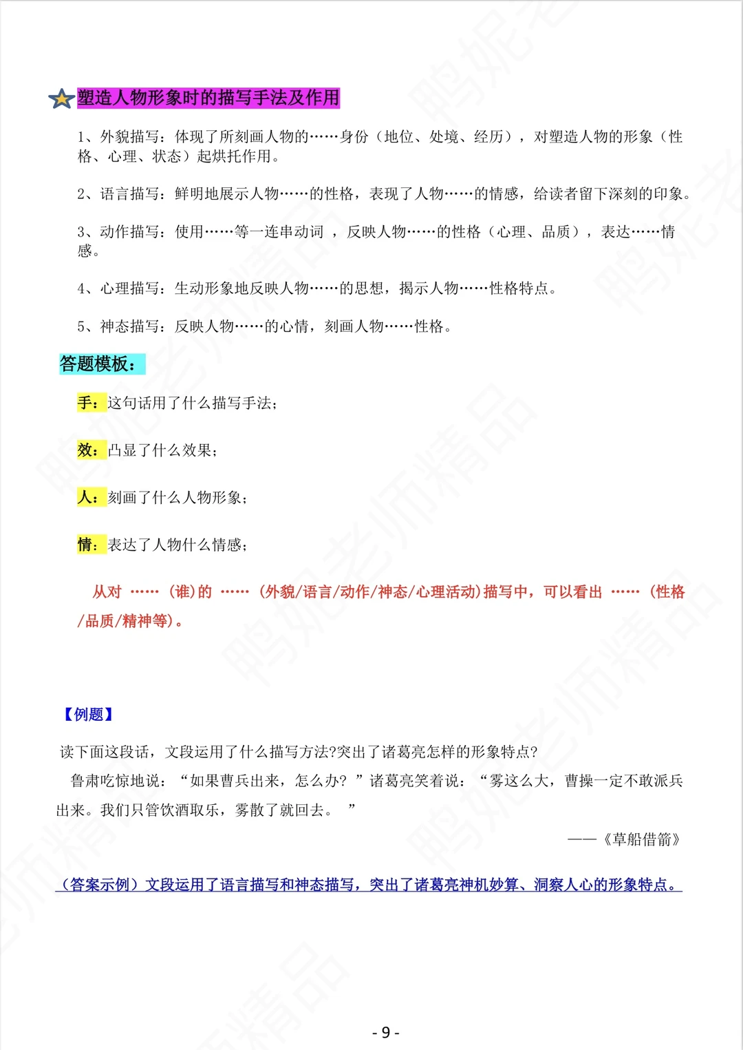 五下语文阅读要素答题模板终于给你们“肝”出来了!提前让孩子在家里预习起来~