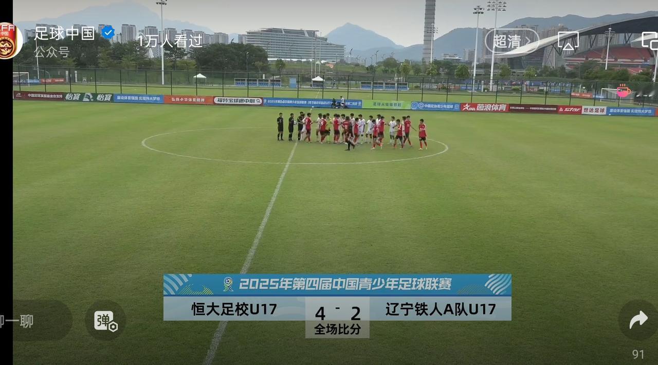 最新消息--第四届中青赛恒足U17战胜辽宁铁人A队U17,一天双赛后没影响! 在9月29日下午刚刚结束的恒足队U17对辽宁铁人A队U17比赛,恒足队以4:2战胜辽宁队。在60分钟前双方战成2:2,最后30分钟,恒足利用一次边路高球传中射门后补射,以及中路前锋一次过人配合近距离射门,领先两球杀死比赛。 恒足小伙子太棒了!又赢了!