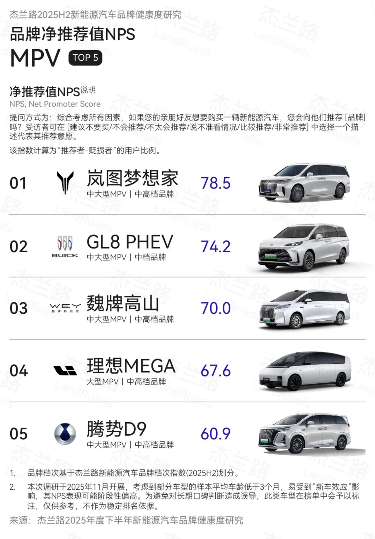 岚图梦想家斩获高端 MPV “双料冠军”,重构豪华价值标尺 1 月 10 日数据显示,岚图梦想家成 2025 年高端 MPV 市场大赢家:2025 下半年销量 43191 台蝉联榜首,全年销量 80248 台同比增长 46%;同时以 78.5 分 NPS(净推荐值)登顶新能源 MPV 榜首,连续两年蝉联该榜单第一,斩获销量与口碑 “双冠”。 双冠背后是硬核实力支撑。岚图梦想家基于纯电原生豪华架构(ESSA)打造,摆脱 “油改电” 桎梏,搭载 800V 高压平台,支持 5C 超充与 350 公里纯电续航,搭配魔毯空气悬挂与 CDC 阻尼系统,兼顾舒适与操控。其 2000MPa 笼式车身获 C-NCAP 五星认证,5.3 米车身实现全员平等空间布局。此外,与华为深度合作的乾崑 ADS 智驾及鸿蒙座舱,构建 “1+1>2” 的智能体验。 值得关注的是,该车均价超 40 万元仍领跑市场,55% 用户来自 BBA 等豪华品牌增换购,高端 MPV 市场每卖出 3 台就有 1 台是它。这标志着中国高端汽车消费从 “品牌符号” 转向 “价值投资”,岚图梦想家以全场景、全乘员的细腻体验,重新定义了高端 MPV 的豪华标尺。 面对 2026 年加剧的市场竞争,岚图梦想家凭借技术长期主义与用户口碑护城河,持续引领中国高端 MPV 赛道向上发展。