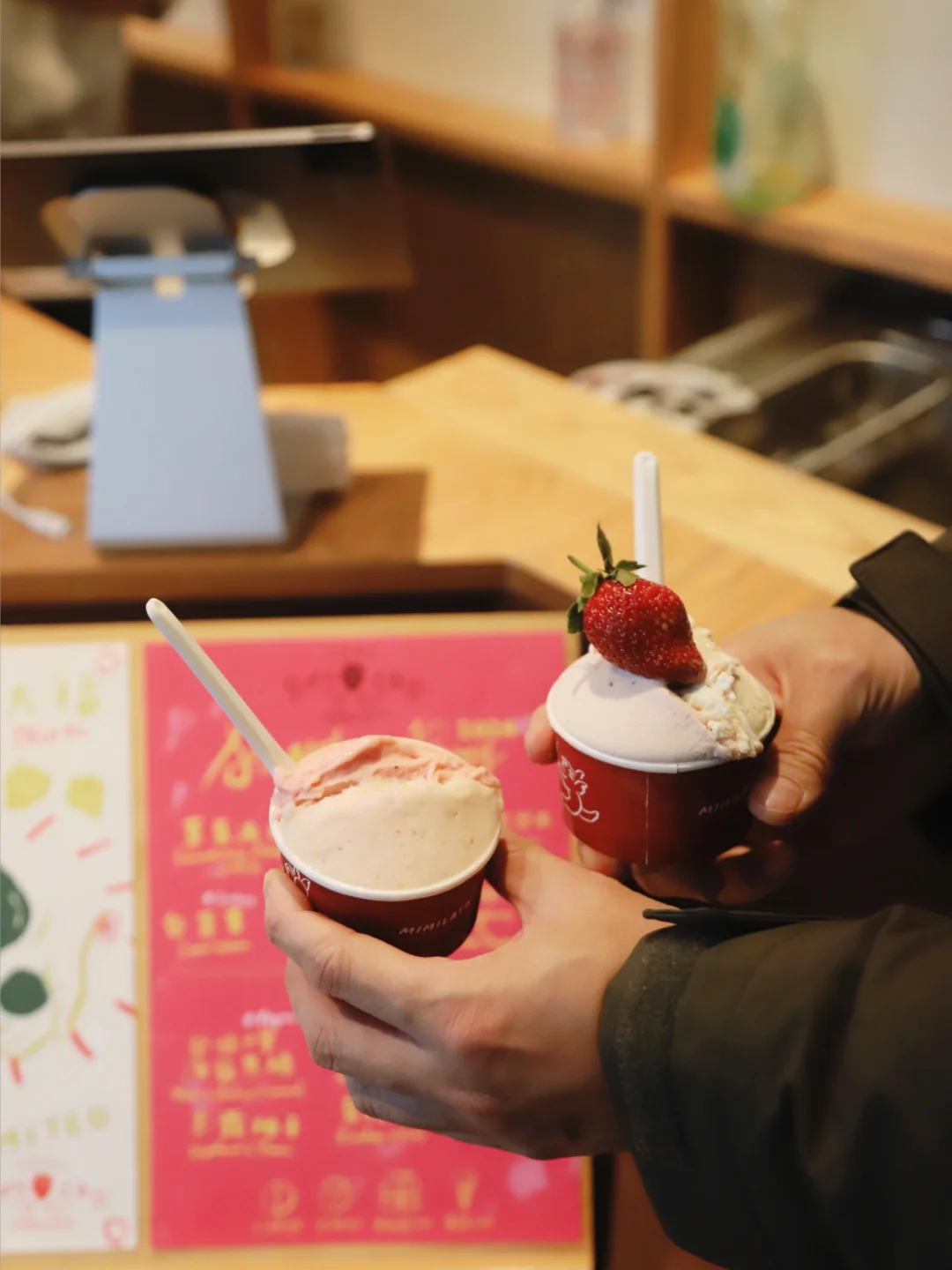 又到了吃草莓的季节啦🥰 分享两家好吃的草莓甜品🧁 - 1.栗cafe 草莓芭菲🍸和草莓布丁🍮 芭菲颜值非常高,拍照📸嘎嘎出片,虽然口味上层次略有欠缺,好在每一层都是好吃的。 草莓布丁很好吃,口感很好,蛋香浓郁不甜腻。和草莓特别搭。 - 2.mimilato 每年草莓季他们家的gelato都很惊艳🍦 真的是把草莓味做出花来。 去年特别喜欢草莓布里欧、草莓酸奶。 今年白草莓和草莓胡椒依然有惊喜,白草莓非常浓郁,胡椒又有特别的颗粒感。