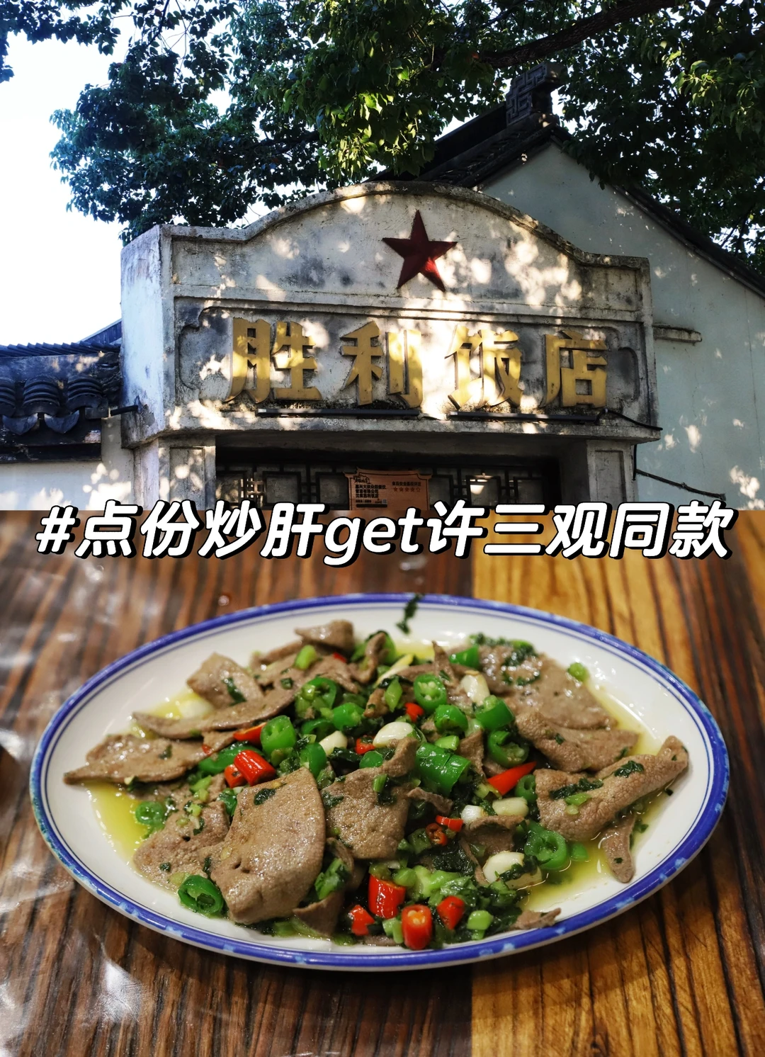 网红饭店,许三观卖血记拍摄地,有余华签字和照片。必点雪菜炒猪肝,体验书里“一盘炒猪肝,二两黄酒”的道地吃法。