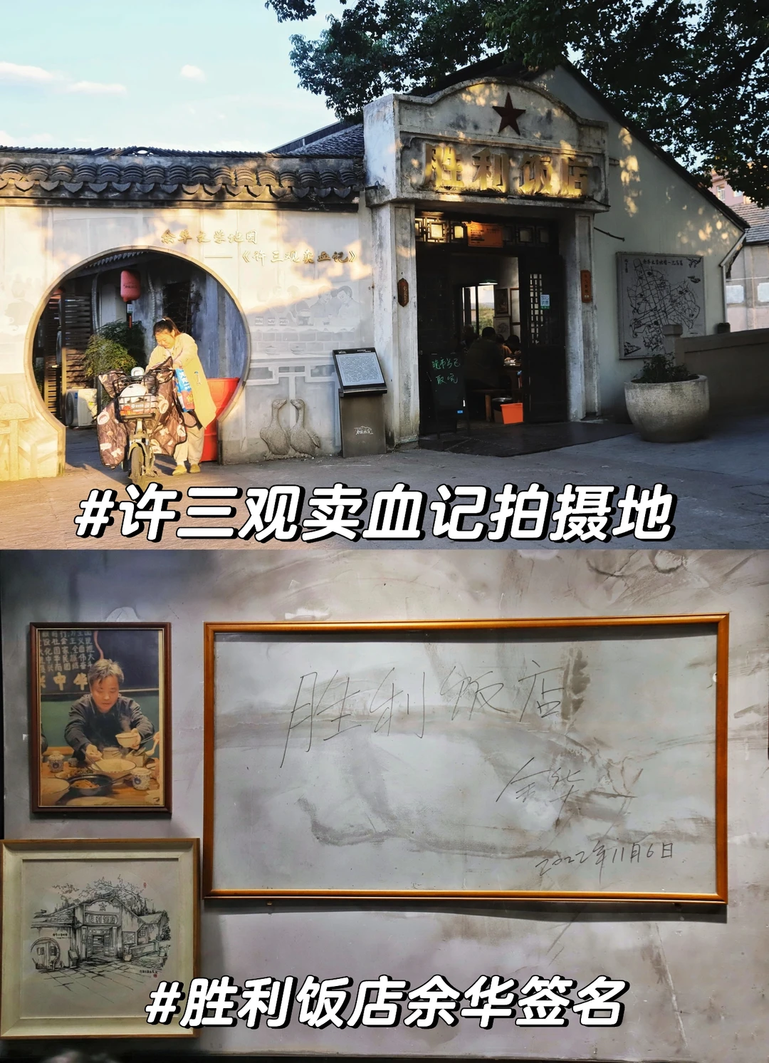 离上海1.5h车程🚗,这里是余华老师写下《许三观卖血记》等多部文学作品的地方,有很多店有余华老师的签字。每个景点都能停车。