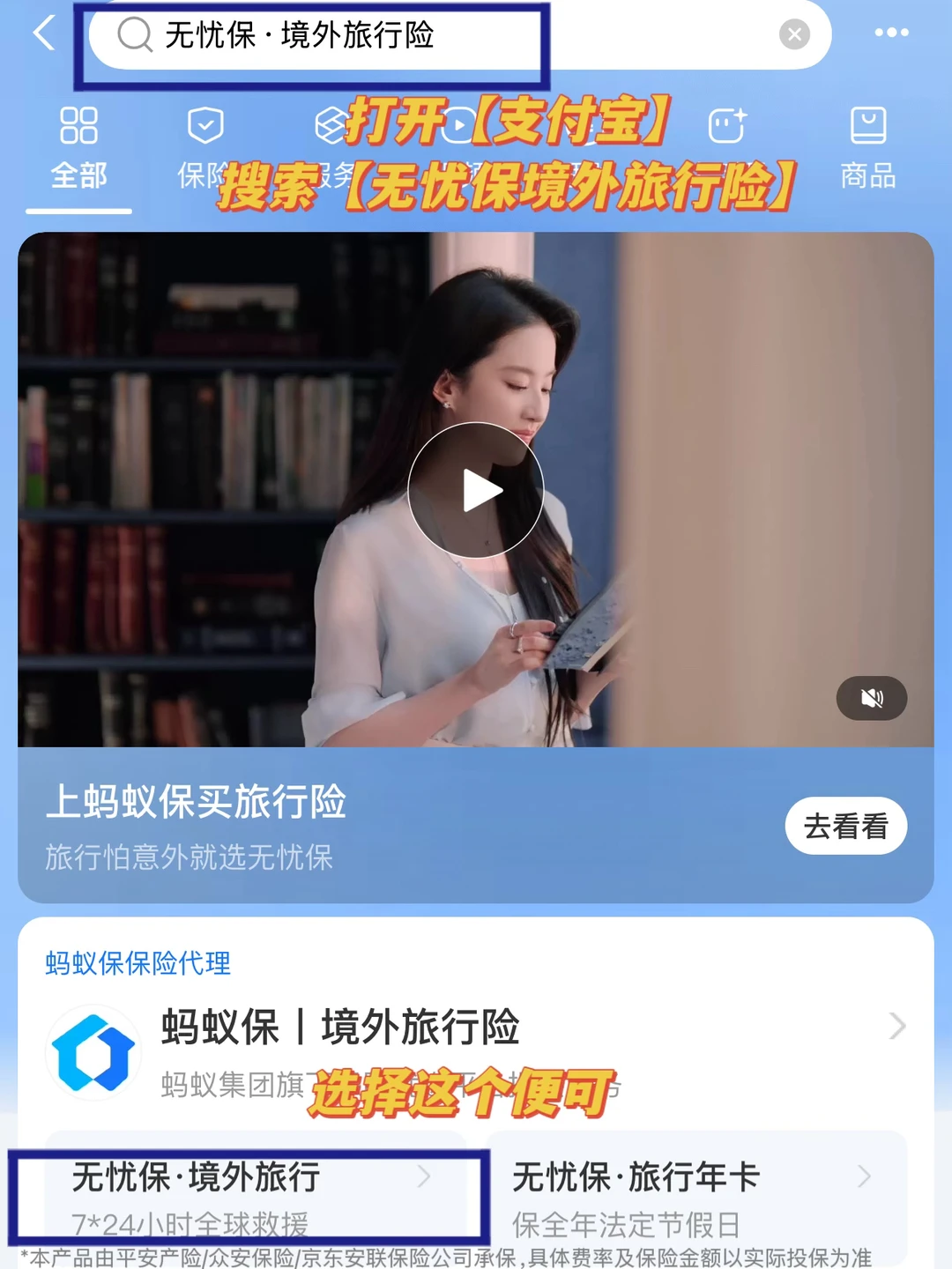 现在支付宝搜“无忧保·境外旅行险”