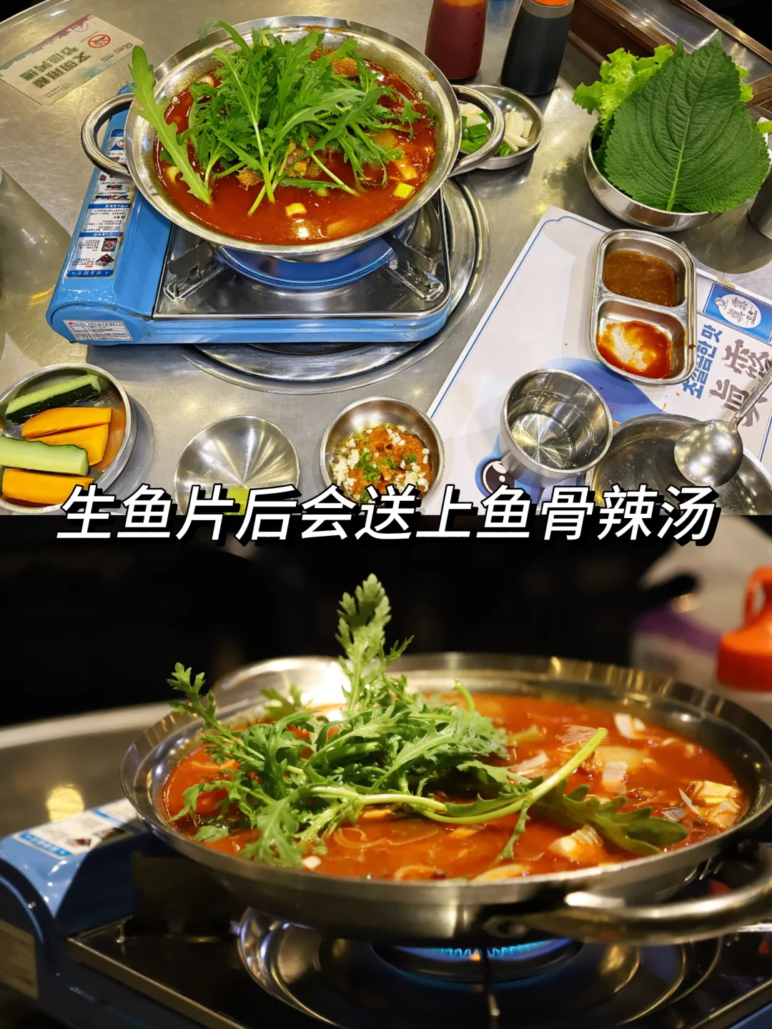 🍲🍲🍲生鱼片前会送鱼饼汤很暖胃,生鱼片后会有剩下的鱼肉做的汤