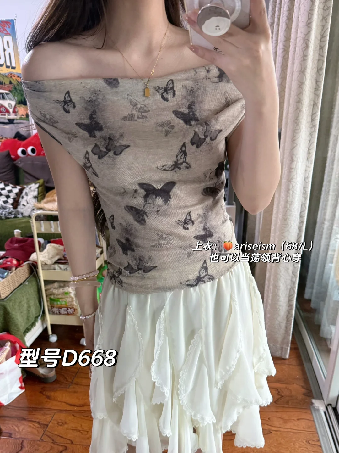 黄油碎花裙,把气质穿在身上。黄油底撞色黑蓝碎花,自带复古滤镜,吊带裙型勾勒出