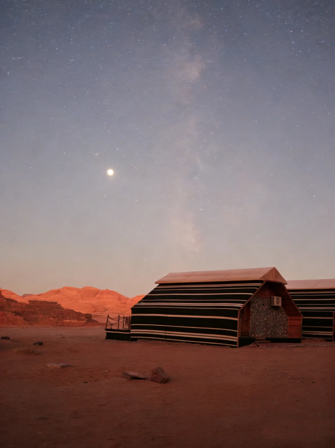 安曼住市区即可;佩特拉住入口附近;Wadi Rum一定选沙漠营地;死海建议住一晚酒店。
