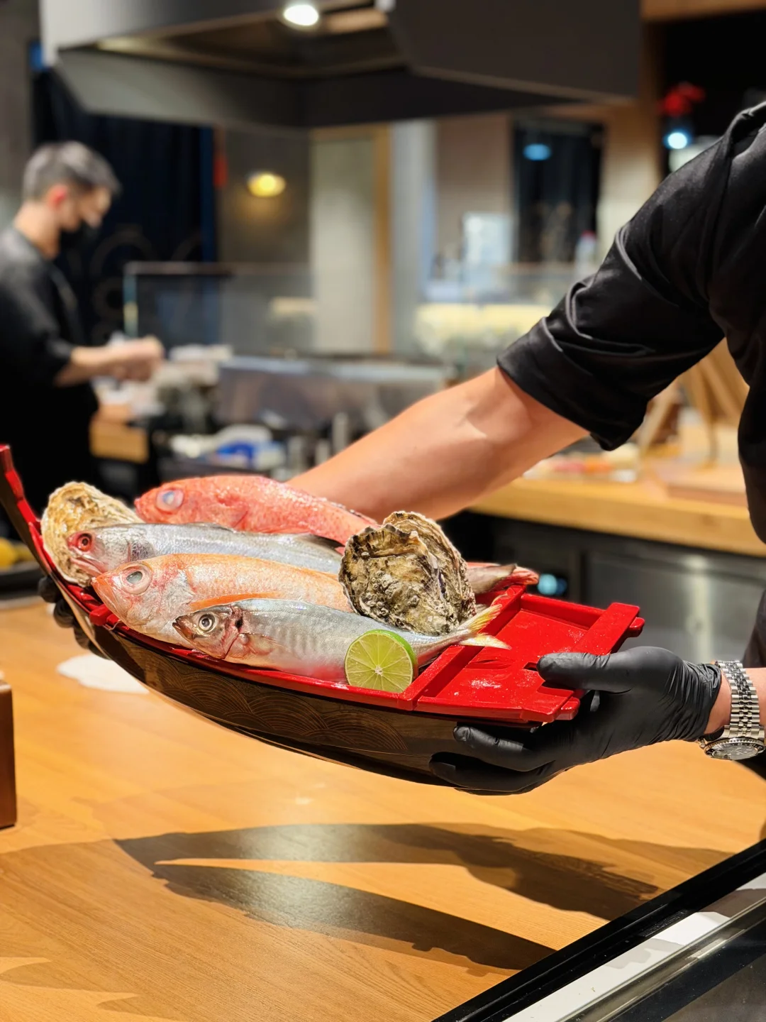 🐟刺身小船:三文鱼厚实、甜虾鲜甜,店员喊“一帆风顺”排面拉满