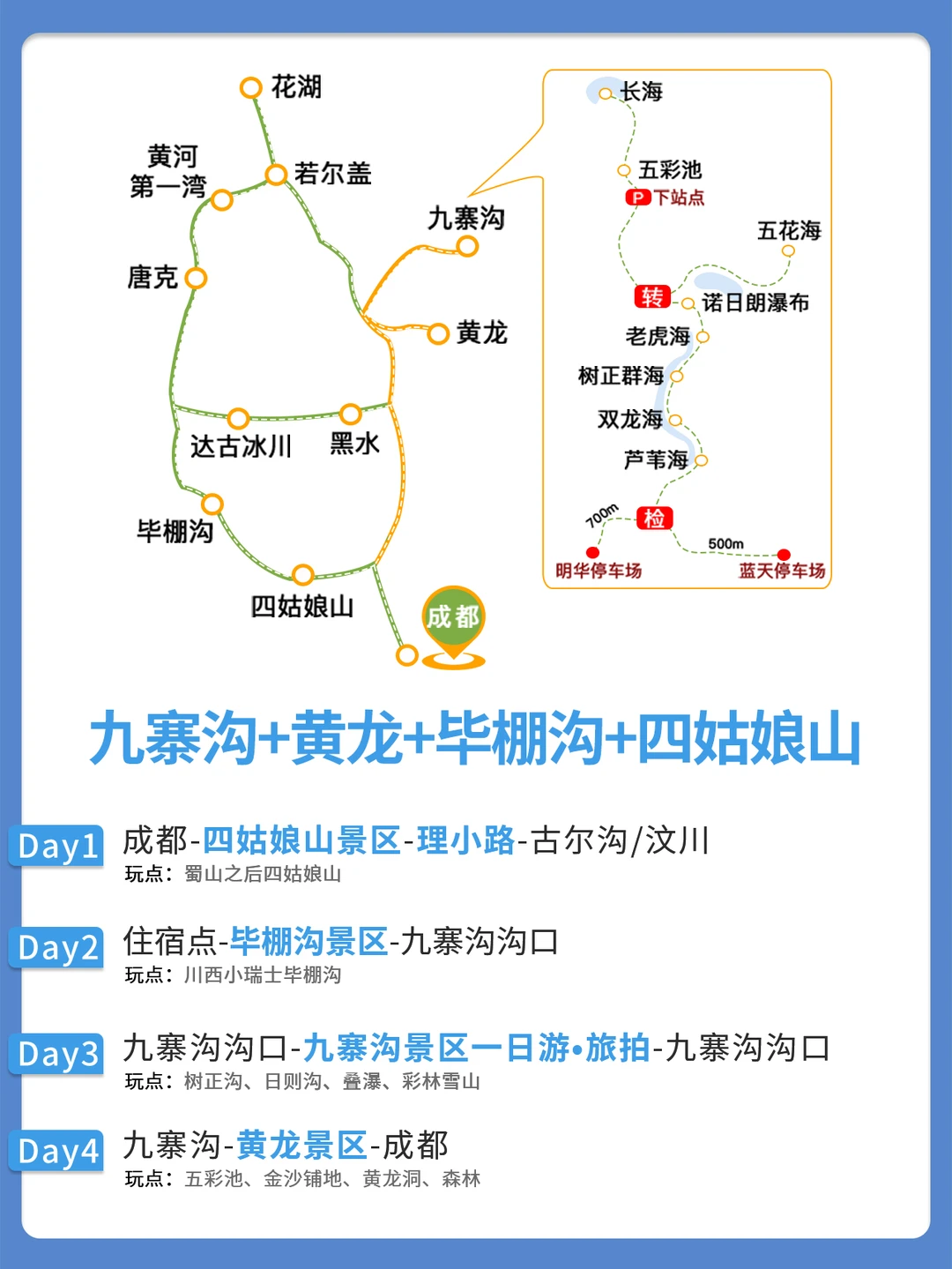 🏔️ 九寨沟、黄龙海拔较高,可提前准备红景天或氧气瓶!