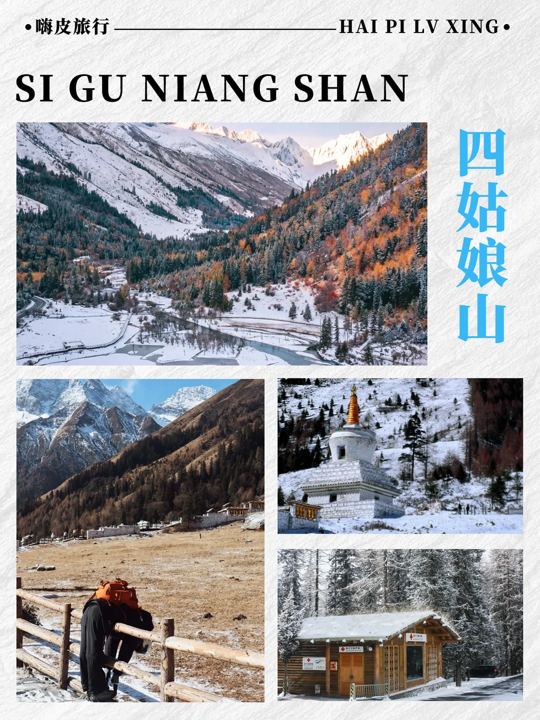 ✨ 四姑娘山: 双桥沟的雪景太绝了,白塔、经幡、雪山,氛围感直接拉满!🏔️