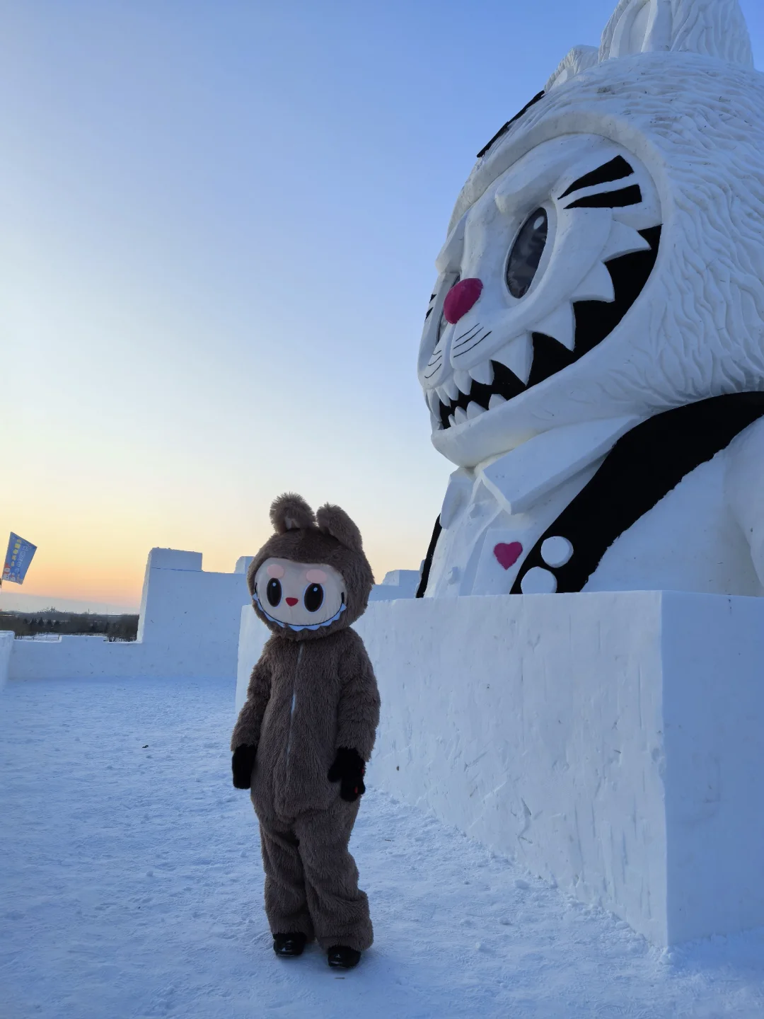 听说大雪人后面的拉布布滑梯开了 紧急穿上我的拉布布战袍 提前做好攻略,到大雪人对面买了雪人蛋糕,借了雪人斗篷,拍了照片,吃了蛋糕 完美,拉布布滑梯现在人少好玩,19.9一次快去。 滑完滑梯直接冲回去还,雪人斗篷,上二楼吃雪人蛋糕还有热饮 一楼还有很多独家的文创超可爱。 这一站攻略完美。 建议大家第一站直接冲大雪人。
