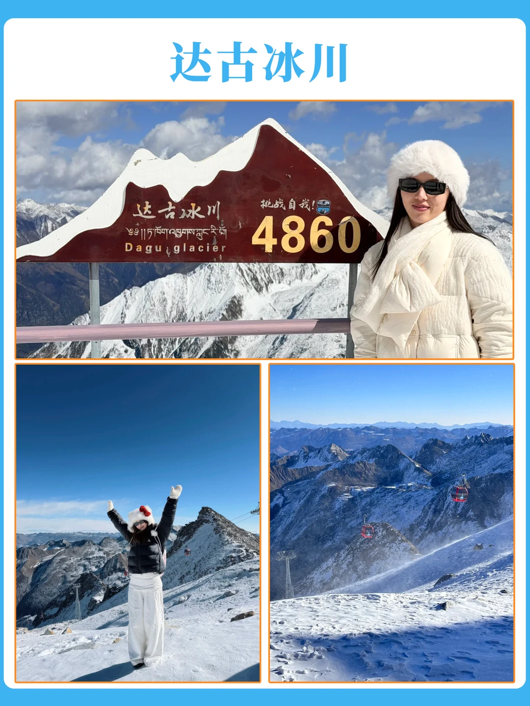 Day2前往达古冰川,登顶4860米冰川之巅,感受“伸手触云”的震撼☁️✨。