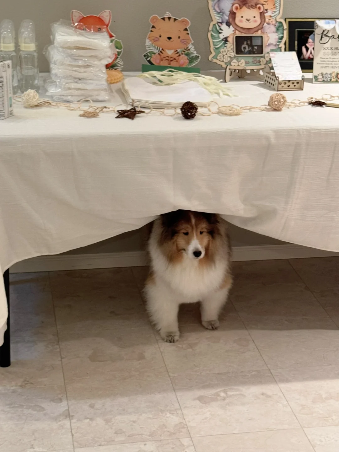 圆嘟嘟左卫门 发一段小狗日常合集~ 朋友家baby shower球球一直躲在桌子下面也是绝了…