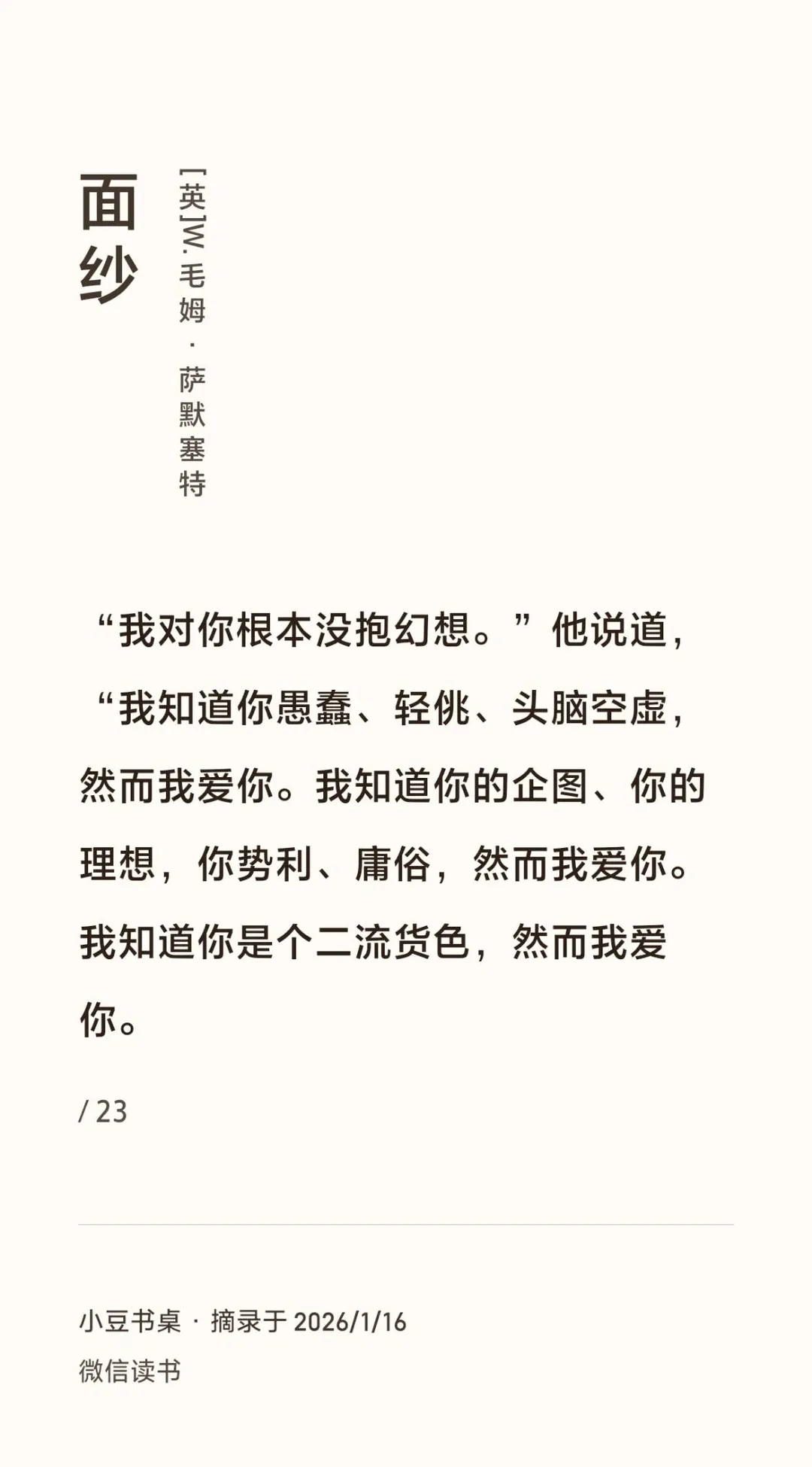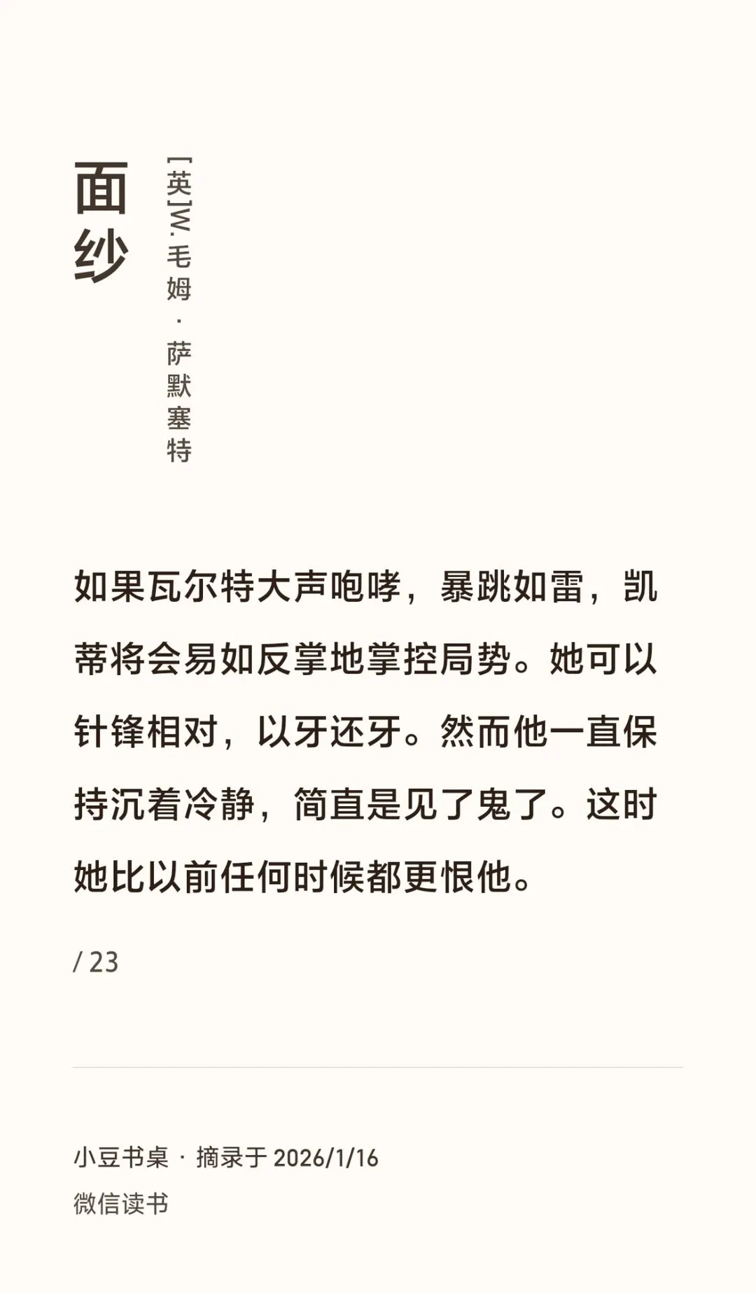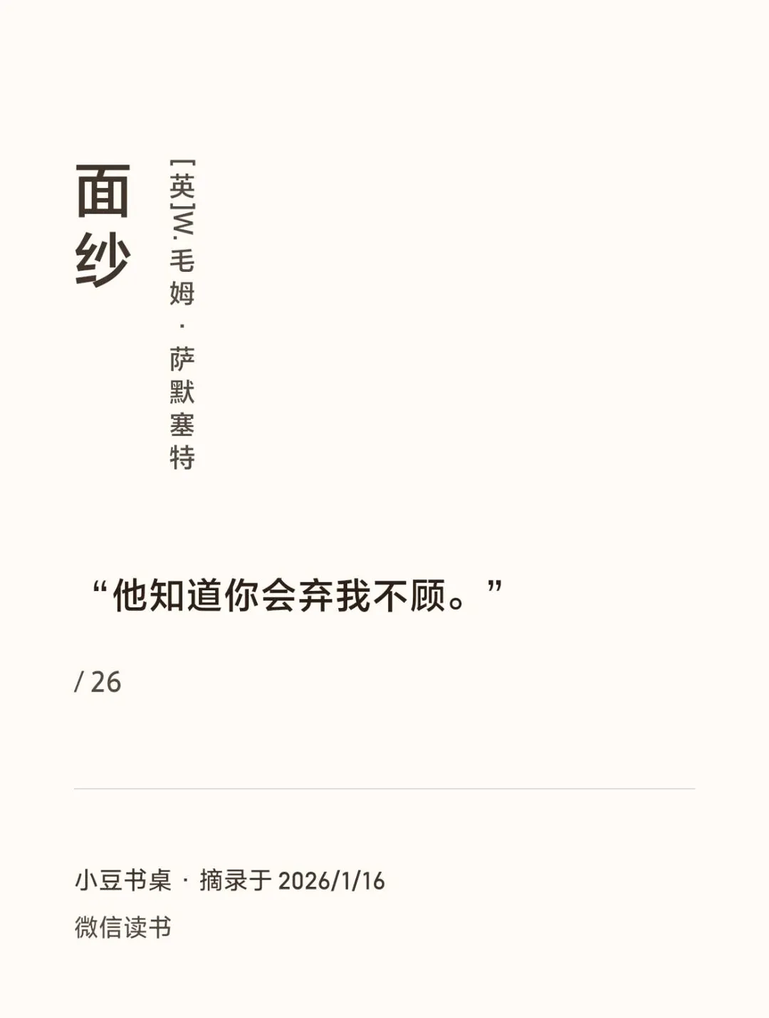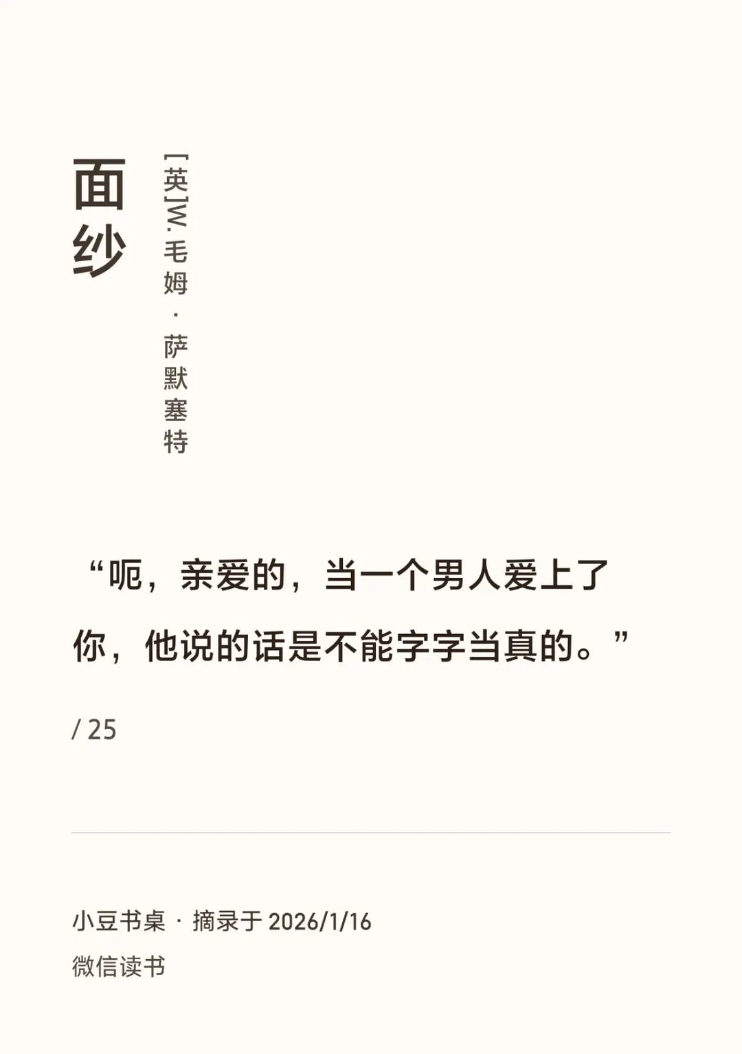 谁懂啊!时隔多年重读毛姆的《面纱》,依旧被字里行间的人性剖白狠狠戳中😭 这本被誉为“恋爱脑清醒指南”的经典,早已超越了爱情本身,写透了我们每个人都在面对的——面纱下的自我与人性。