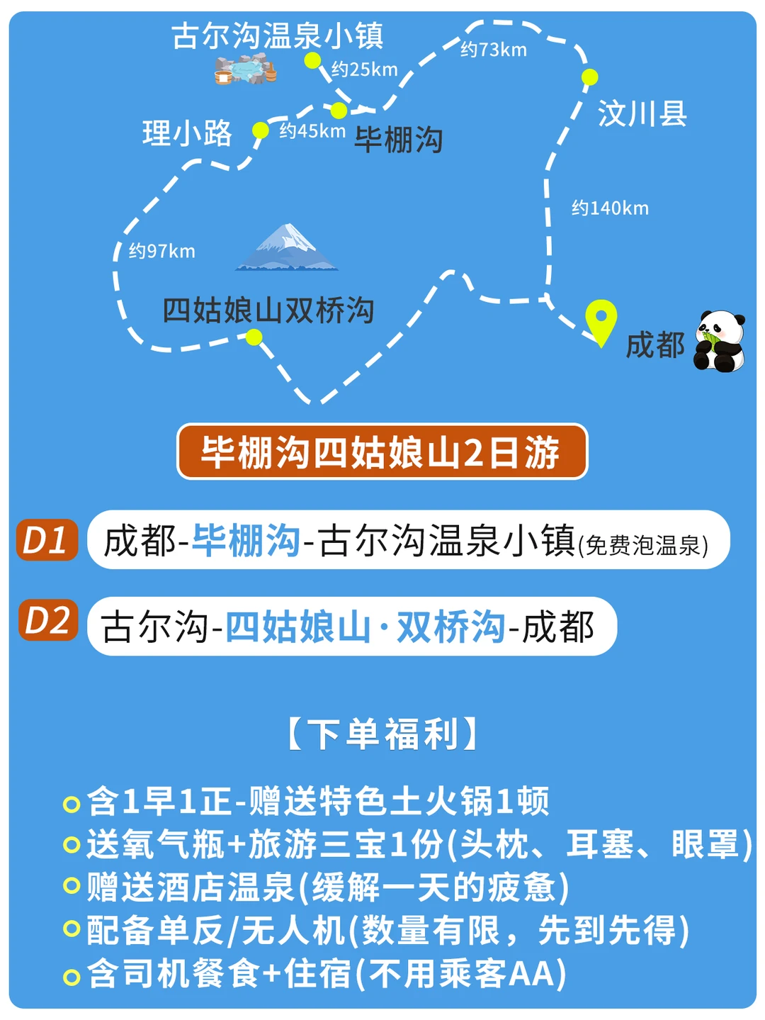 D1:成都→毕棚沟(冰湖雪松)→古尔沟温泉小镇