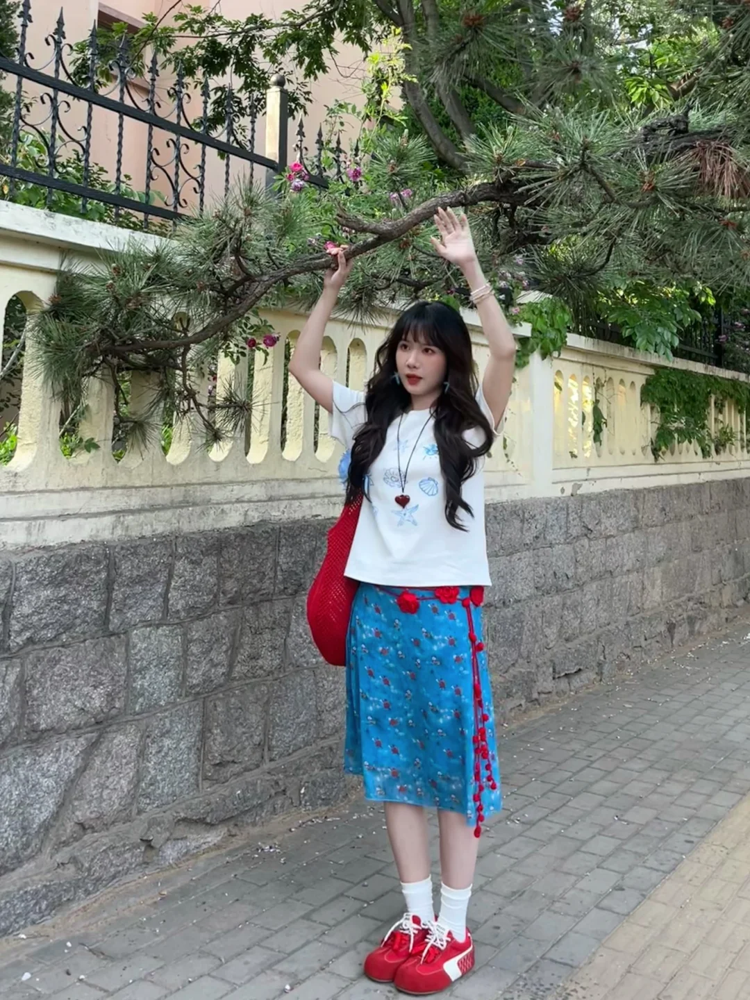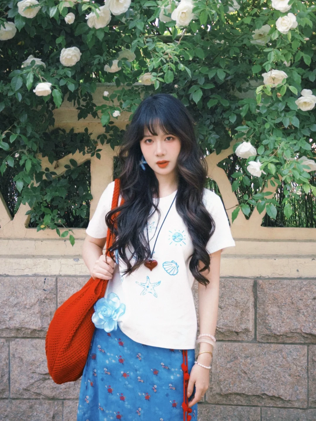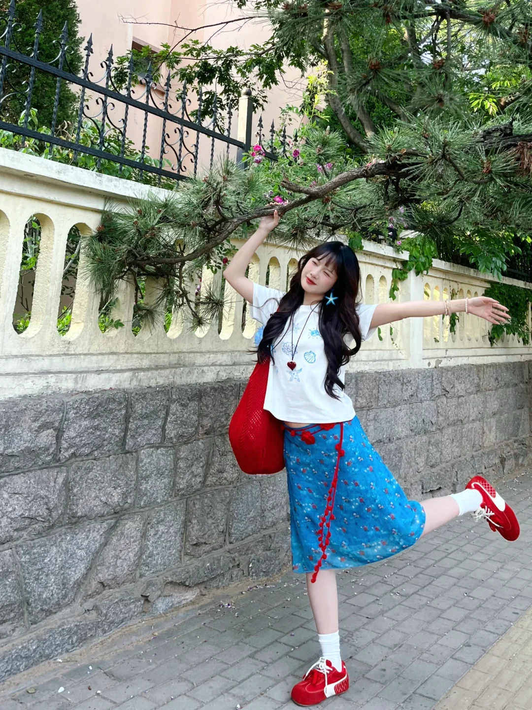 168/106左右 又是一套很平价的海岛搭配 非常非常明媚又显白的一套 性价比还蛮高嘟 值得一试 这套其实小心思还蛮多 搭配了很多配饰 确实会起到点睛之笔的作用 蓝色➕红色cp经久不衰!! 大家也可以搭配其他蓝色系的裙子或者裤子 也是很好看的 也可以直接搭配红裙子 反正红色蓝色白色三个颜色组合不会出错~ 拍照地点📍青岛 第二海水浴场附近