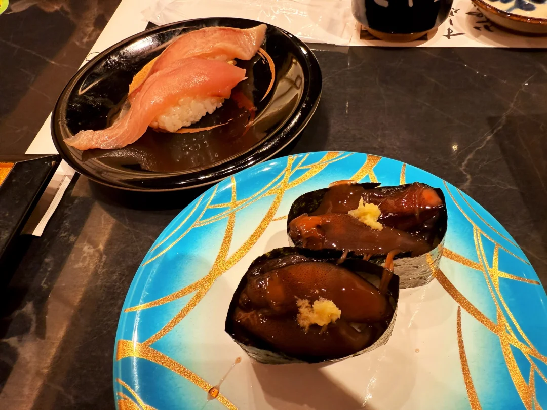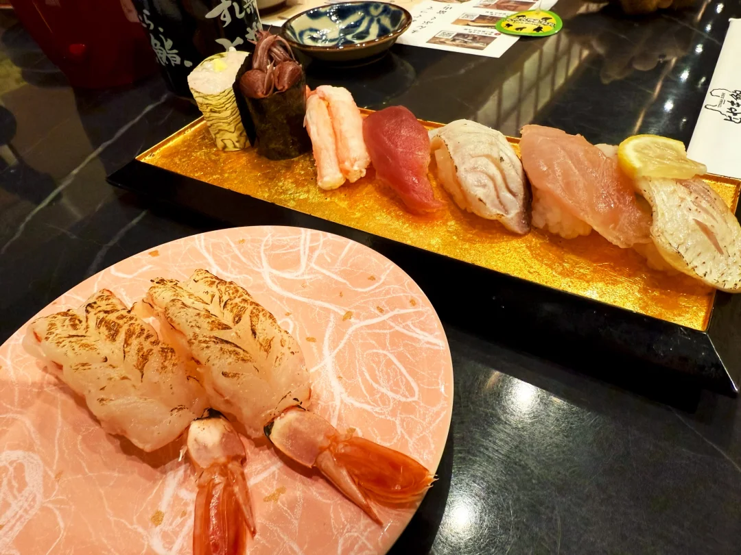 这里的甜虾寿司简直一秒入魂,作为甜虾爱好者 不得不说 这次吃到细糠了;金枪鱼大腩也是入口即化;鳗鱼寿司孩子炫了三份[笑哭了R];荧光鱿鱼比较咸 如果为了猎奇 可以尝尝~