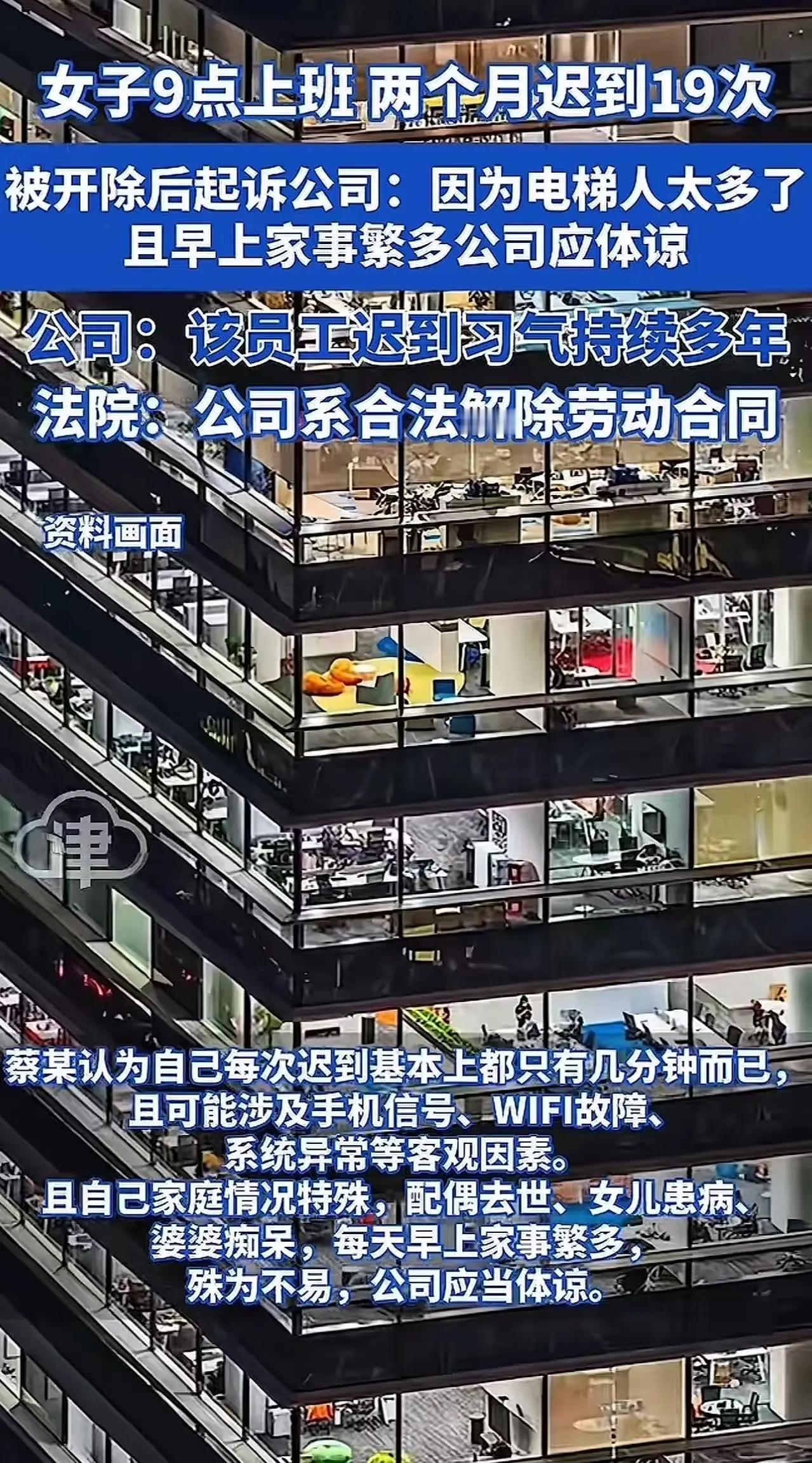 迟到19次开除背后:企业“职场优化”还是员工的“中年困境”? 在公司勤勤恳恳工作了十余年,因两个月迟到19次被开除,员工将公司告上法庭并声称“电梯太挤”,这场看似普通的劳动纠纷,实则折射出当下职场中尖锐的代际冲突与中年危机。法院的判决书不仅是一纸法律文书,更是对职场生态的一面镜子——当老员工遭遇制度铁拳,到底是谁的无奈? “电梯太挤”背后的职场真相 蔡某委屈的辩解令人唏嘘。在写字楼早高峰挤过电梯的人都知道,那几分钟的等待往往身不由己。但两个月19次迟到,平均每周超过2次,这真的只是电梯的问题吗? 深层次看,这可能是老员工在新职场规则下的不适应。十几年前她入职时,或许考勤制度尚有人情味;而如今企业追求效率最大化,钉钉打卡精确到秒,迟到三次就要约谈。当传统工作习惯遭遇数字化管理,一些老员工就像被时代快车甩下的乘客,还在站台等待那班永远不会来的旧班车。 企业“优化”的中年危机 领导口中“岁数大了”四个字,道破了职场年龄歧视的潜规则。在部分企业眼中,老员工等于高成本、低效率、难管理。两个月19次迟到,恰好成为“合理解雇”的完美理由。 但这样的优化真的合理吗?一个工作了十几年的员工,她的经验、对公司的忠诚、对业务的熟悉,难道抵不过几次迟到?企业用新人的标准衡量老员工,是否忽略了不同年龄阶段员工的不同价值?当职场只剩下冰冷的KPI和考勤数据,那些无形却宝贵的职场资本正在被无情抛弃。 法院判决的平衡艺术 法院的判决结果尚未公布,但无论谁胜谁负,此案都已暴露出劳资关系的深层次矛盾。法律需要平衡企业自主管理权与劳动者权益保护,而真正的难题在于:如何在效率与公平、制度与人性之间找到那个微妙的平衡点? 如果法院支持公司,可能助长企业以考勤为由淘汰老员工的风气;如果支持员工,又可能削弱企业正当的管理权威。这场官司的看点,恰恰在于法官如何解读“合理”二字——19次迟到是否构成严重违纪?公司的处理是否遵循了程序正义?所谓“岁数大了”是否构成歧视? 职场需要温度,制度需要弹性 这场纠纷给我们最大的启示或许是:职场不该只有冷冰冰的制度。企业可以在严格执行考勤的同时,建立更人性化的沟通机制——了解员工迟到的真实原因,提供弹性工作时间,对确有困难的老员工给予适当关照。 同时,老员工也需要自我革新。职场不相信眼泪,只相信价值。保持学习能力,适应新规则,提升不可替代性,才是应对中年危机的最好方式。倚老卖老、固步自封,最终只会被时代淘汰。 寻找职场中的最大公约数 一个健康的社会,应该让不同年龄的劳动者都能找到自己的位置。年轻人带来创新与活力,老员工贡献经验与稳定。企业需要做的不是非此即彼的选择,而是搭建代际融合、优势互补的团队。 蔡某的案件提醒我们:在追求效率的今天,职场不能丢失基本的人文关怀;在捍卫权益的同时,员工也需要遵守基本的职业规范。只有企业和员工相互理解、共同成长,才能构建真正可持续发展的职场生态。 这件事你怎么看?是公司不近人情,还是员工倚老卖老?欢迎在评论区分享你的观点,让我们一起探讨这个时代的职场困境与出路。