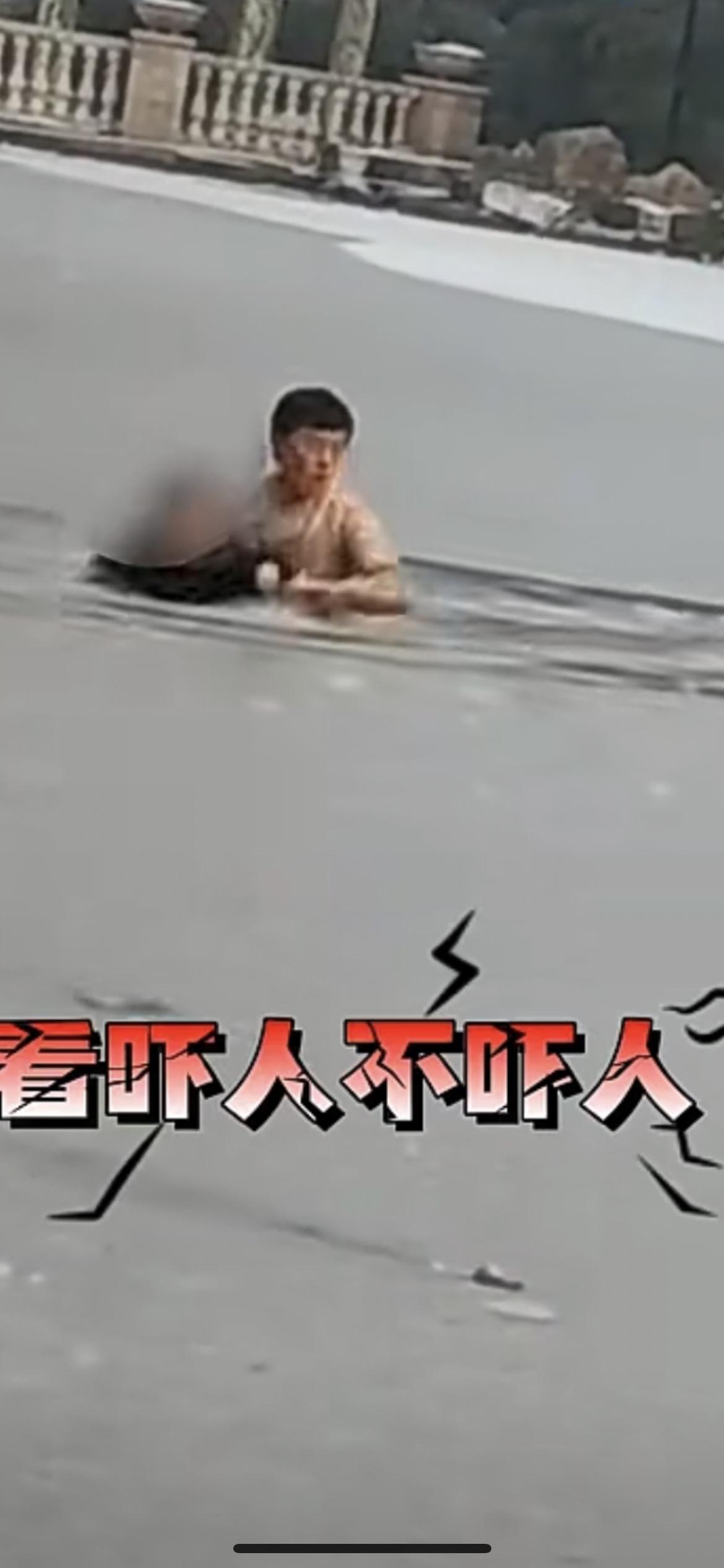 1月25日,河南洛阳恒大绿洲西区的人工湖出事了,一男孩冰面玩耍突然掉进冰窟,他一次次按压冰面想撑上去,可冰面却越裂越大,热心路人毫不犹豫上前救援,将孩子托举出冰面后自己险些被困,幸被另一好心人拉起。