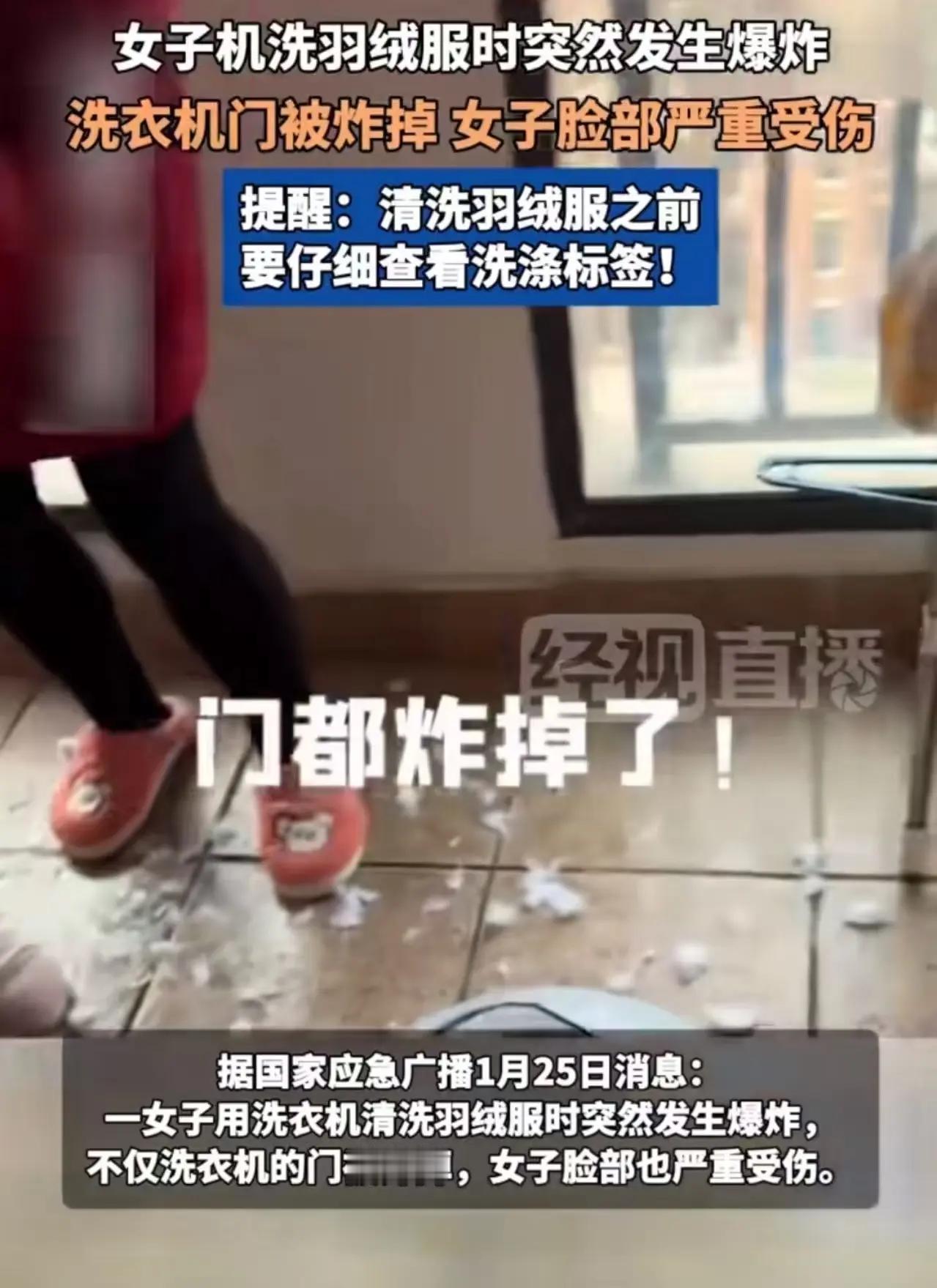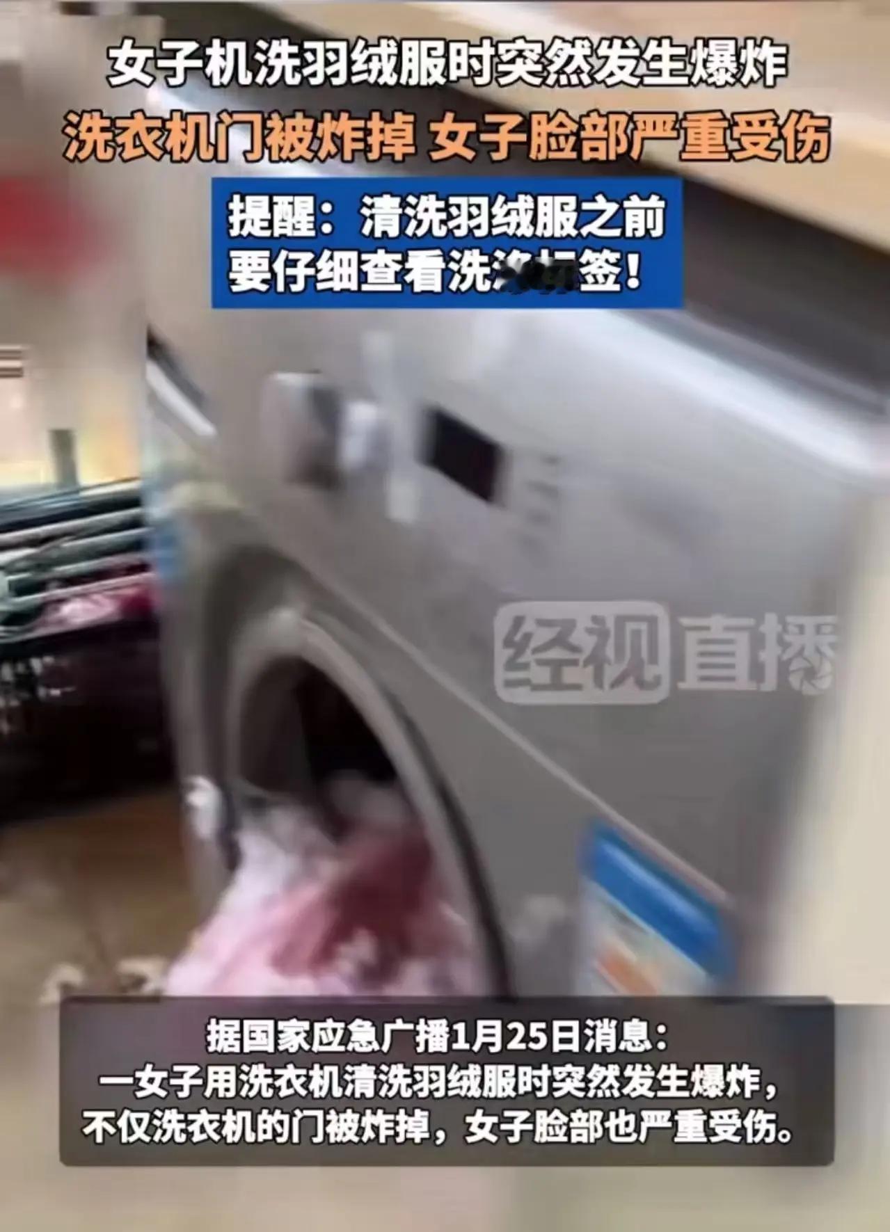 羽绒服爆炸背后的警示:无知代价有多沉重?所有洗衣机用户都必须注意! 一块污渍引发的惨剧!河南一位女士羽绒服炸脏后,随手丢进洗衣机,几秒后机器炸裂、面部受伤的惊魂瞬间,揭开千万家庭潜藏的安全隐患——不是所有衣物都能进洗衣机,一次操作失误,可能让你付出终身代价! “洗衣机会爆炸?”这对大多数人来说简直是天方夜谭。但当监控镜头记录下那骇人一幕——洗衣机滚筒在剧烈震动后突然炸裂,金属门板被冲击力抛飞,女主人捂着脸痛苦倒地时,所有人才猛然惊觉:这个每天为我们清洁衣物的“帮手”,竟也可能成为家庭中的“隐形炸弹”。 究竟发生了什么? 原来,该女子穿着羽绒服做饭时,油渍不慎“炸”到了衣服上。她像往常一样,将沾满油污的羽绒服丢进洗衣机,倒入洗衣液,按下启动键。就在转身准备离开的瞬间,灾难发生了。 专业人士指出:羽绒服在吸水后会变得异常沉重,在洗衣机高速甩干时,湿羽绒会积聚在滚筒顶部,造成严重不平衡。 更致命的是,羽绒服内部的空气在洗涤过程中无法顺利排出,在高速旋转下不断被压缩,最终像气球一样“爆”开——这不是比喻,而是物理现实! 网友们的反应道出了一个可怕真相: “我洗了十几年羽绒服都没事啊!” “吓得我赶紧把刚扔进洗衣机的羽绒服拿出来” “原来洗衣机说明书上写的‘不可洗涤羽绒制品’不是摆设” “我家老人就爱把什么都往洗衣机里塞,怎么说都不听” 这些留言折射出我们日常生活中普遍存在的危险认知盲区:把便利当成安全,把习惯当成常识。 但这仅仅是洗衣机的问题吗? 更深层看,这起事件暴露的是“生活常识赤字”的社会现象。我们生活在技术日新月异的时代,却常常对身边电器的基本原理一无所知。多少人从未认真读过家电说明书?多少人凭“经验”和“感觉”操作复杂设备?多少安全隐患就藏在这些“应该没问题”的自我安慰中? 那位受伤女子醒来后第一句话是:“吃了没有文化的亏!”这句话令人心痛,更令人警醒。她口中的“文化”并非高深学问,而是最基本的生活安全常识——这些本该在义务教育、家庭传承、社会宣传中普及的知识,却成了许多人缺失的一课。 安全警示远不止羽绒服: 除了羽绒服,还有哪些衣物是洗衣机“杀手”? · 带有大量金属装饰的衣物(可能划伤内筒,破坏平衡) · 浸泡过易燃液体的工作服(可能引发爆炸) · 厚重毛毯或棉被(可能导致电机过载) · 鞋类(破坏机器结构,且洗不干净) 更值得注意的是,很多新型面料和特殊材质的衣物,都需要特定的洗涤方式。那个贴在衣服内侧、常常被我们忽略的洗涤标签,其实是一份“安全说明书”。 这起事故给我们每个人都敲响了警钟: 在智能家居普及的今天,我们是否过度依赖设备而丧失了基本判断力?当一键操作成为习惯,我们是否还记得停下来思考:这样真的安全吗? 受伤女子的遭遇绝非个例。每年因不当使用家电引发的家庭事故数以万计,轻则财产损失,重则人员伤亡。而悲剧往往发生在最放松、最不经意的时刻——正因如此,才更值得警惕。 改变从今天开始: 看完这篇文章,请立即做三件事: 1. 检查家中洗衣机说明书,特别注意“禁止洗涤”事项 2. 教育家人,特别是老人和孩子,哪些衣物不能机洗 3. 分享这个案例,让更多人避开这个“隐形陷阱” 生活处处是学问,安全时时需留心。一次正确的洗涤选择,保护的不仅是一件衣服、一台机器,更可能是你和家人的安全与幸福。 记住:真正的便利,是建立在安全之上的智慧。 别让无知成为代价,别让习惯蒙蔽双眼。在这个充满智能设备的时代,让我们都做一个“有常识”的聪明人。