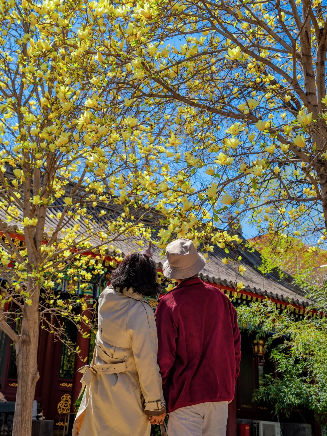 春天开满了玉兰花,松柏常青,在四合院里晒太阳真的太舒服