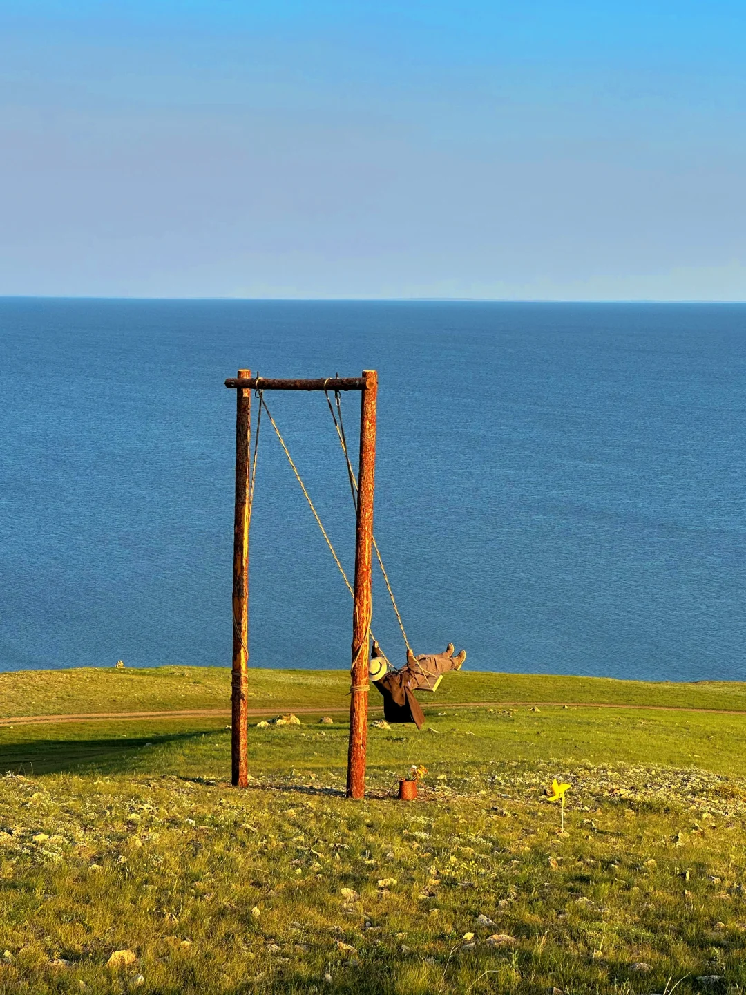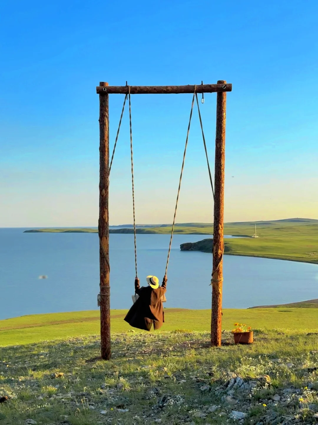在山坡上,面朝呼伦湖荡起这座“孤独的秋千”