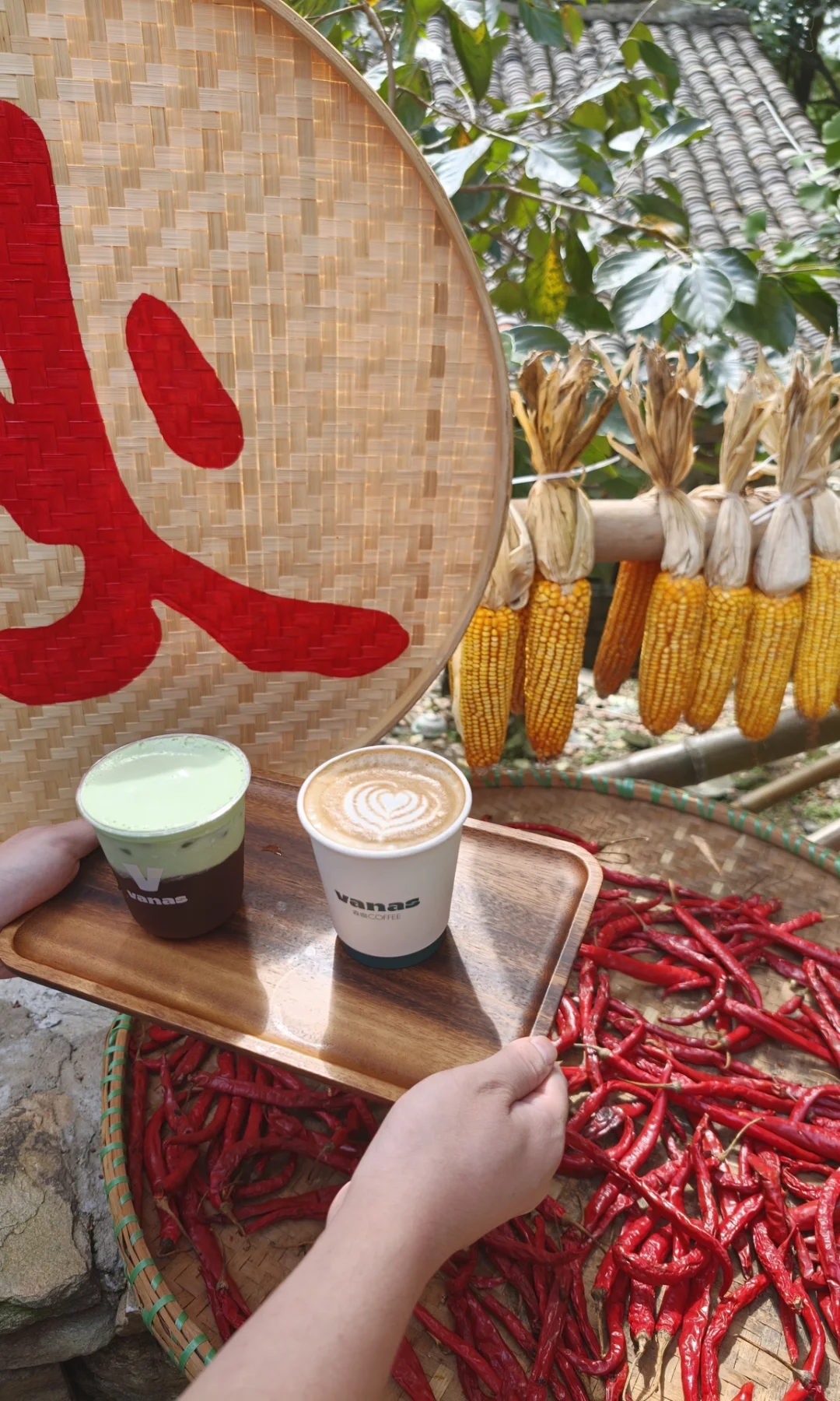 在大余湾的VANAS村咖被晒秋包围