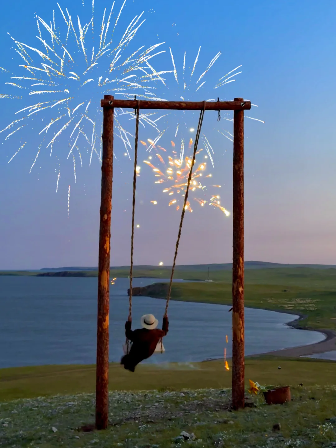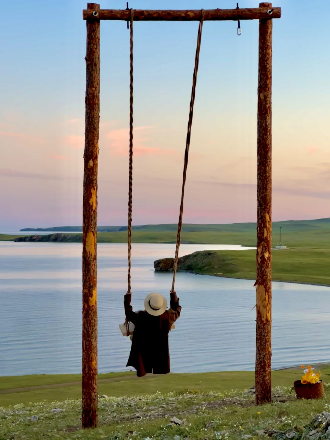 在山坡上,面朝呼伦湖荡起这座“孤独的秋千”