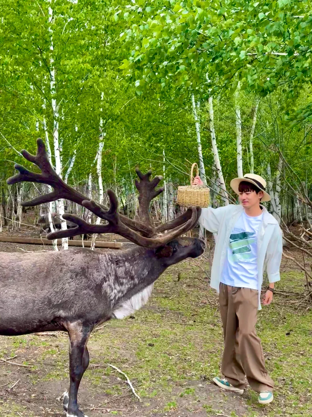 ✅在白桦林里拿着苔藓去喂驯鹿