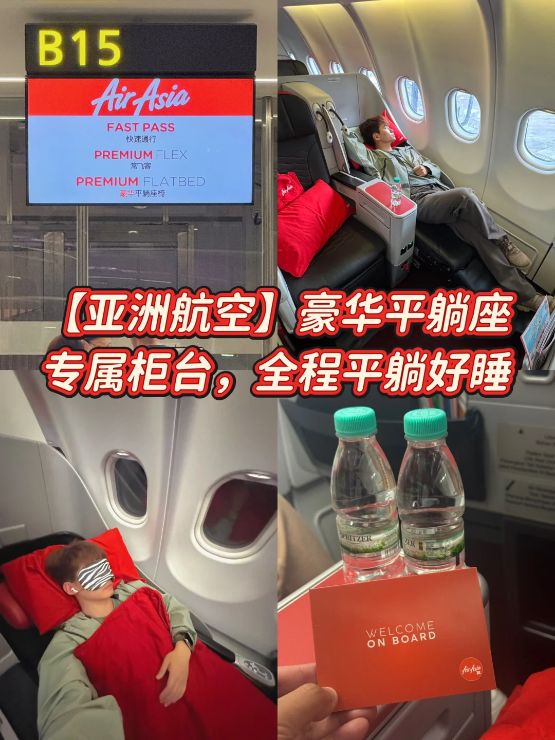 ✅这次还体验了亚航的豪华平躺座位,全程平躺着睡到非洲