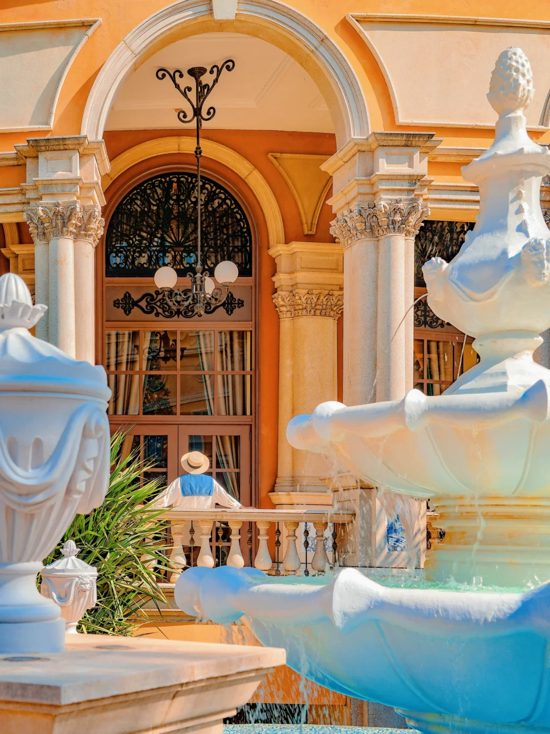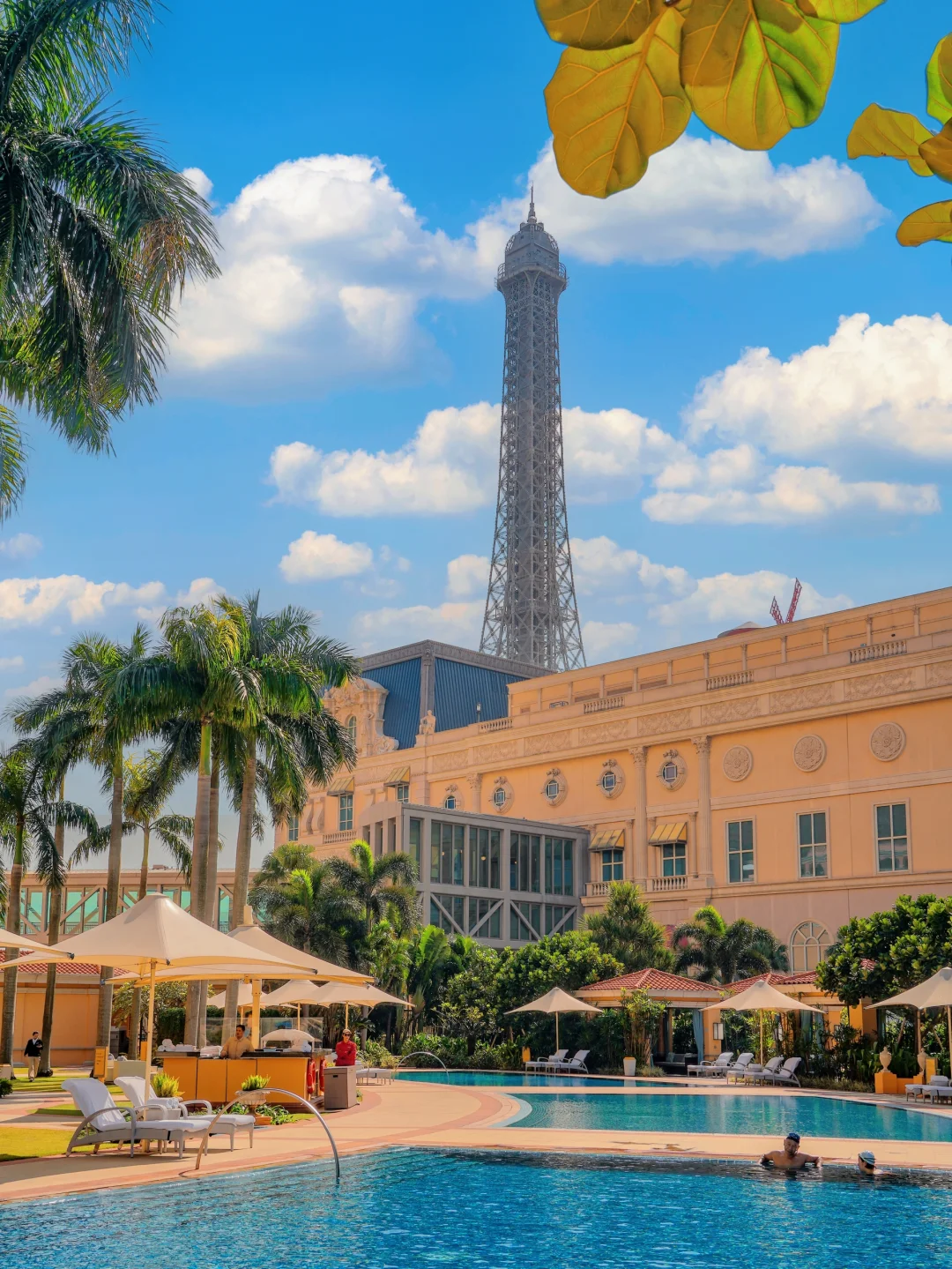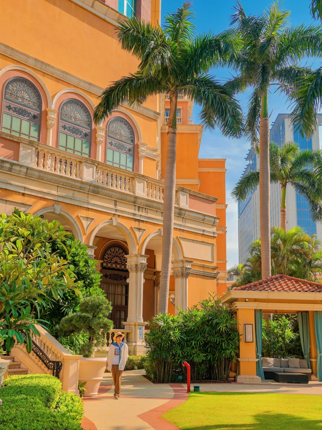 这里竟然有一片巨大的室外泳池,热带植物花园和草坪