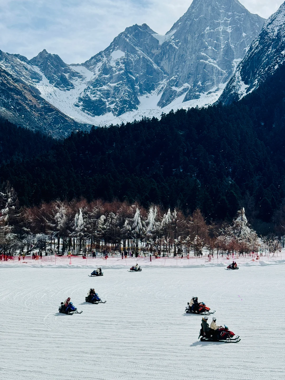 在这里附近还可以体验雪山下的雪地摩托,真的很好玩!!