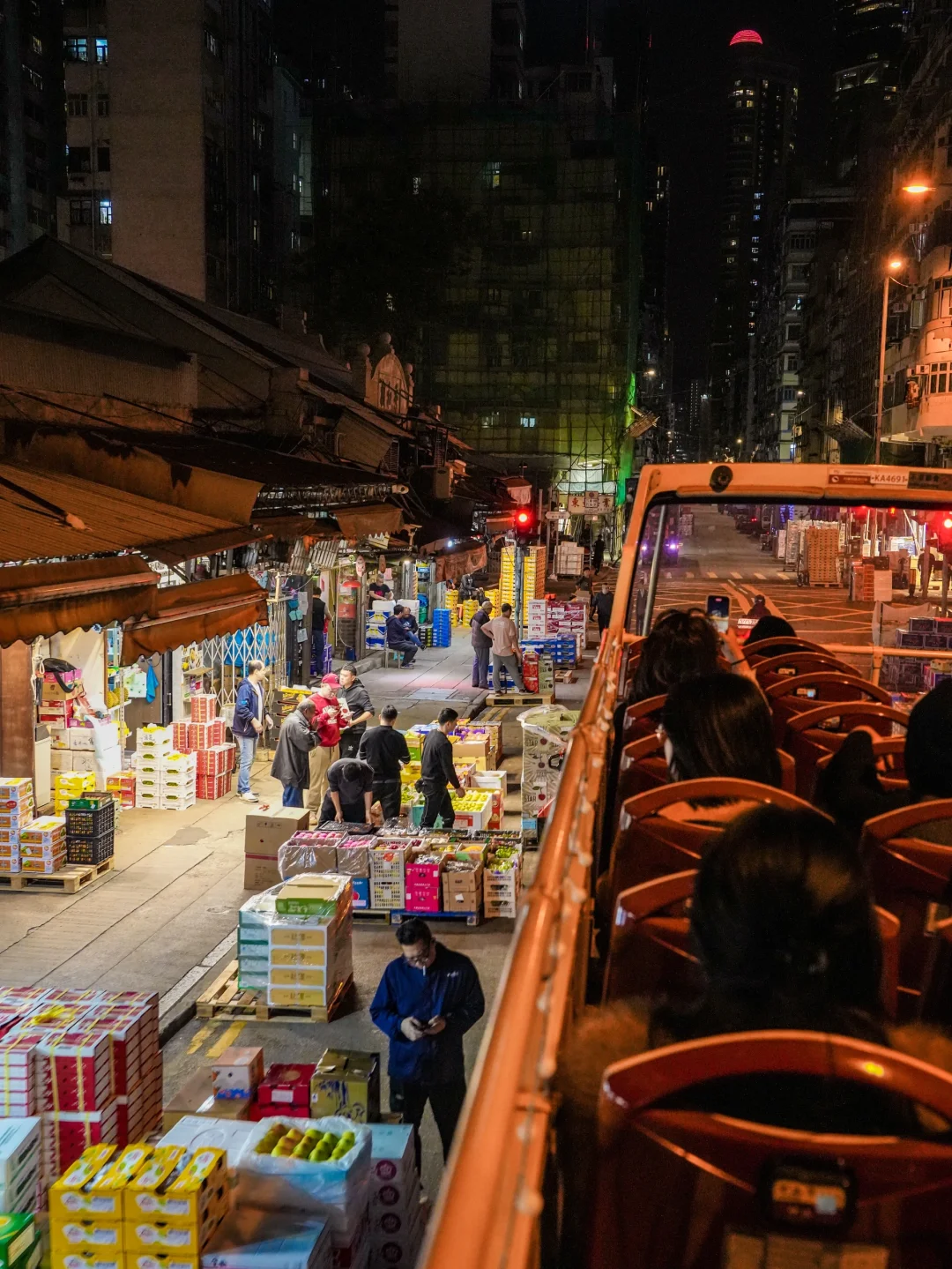 📍坐在敞篷观光巴士上看着油麻地果栏