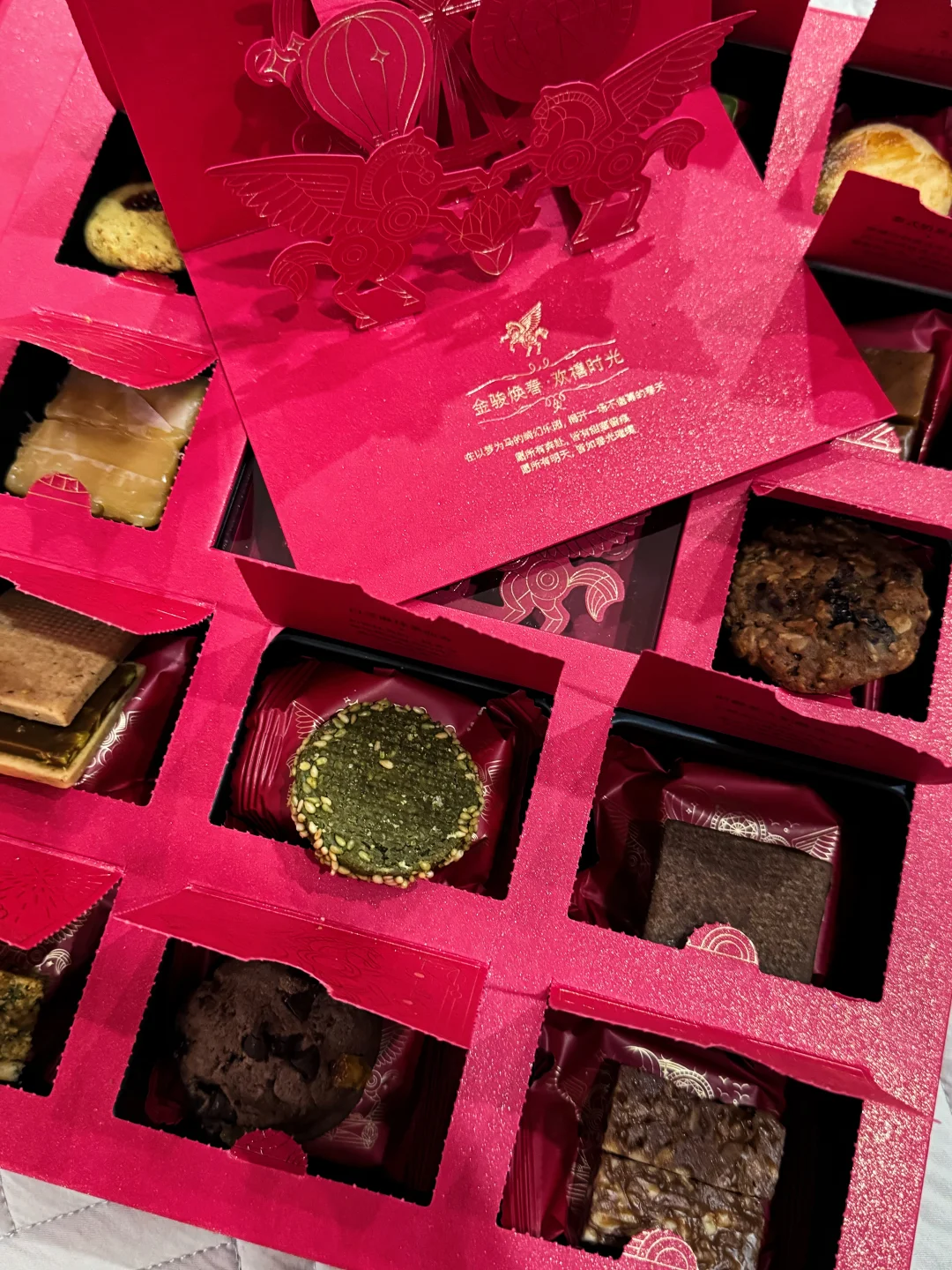 今年的三与叁山太会了 红金配色的礼盒看着就贵气!! 一盒里面有13个格子 每个格子都是盲盒 每格都有惊喜!! 过年解馋神器阿 永远不知道下一个是什么 送朋友送闺蜜送亲戚 太有面了 拿捏所有人的喜好 还在纠结年货买啥的宝宝们 听我一句劝,直接冲这个欧气盲盒!