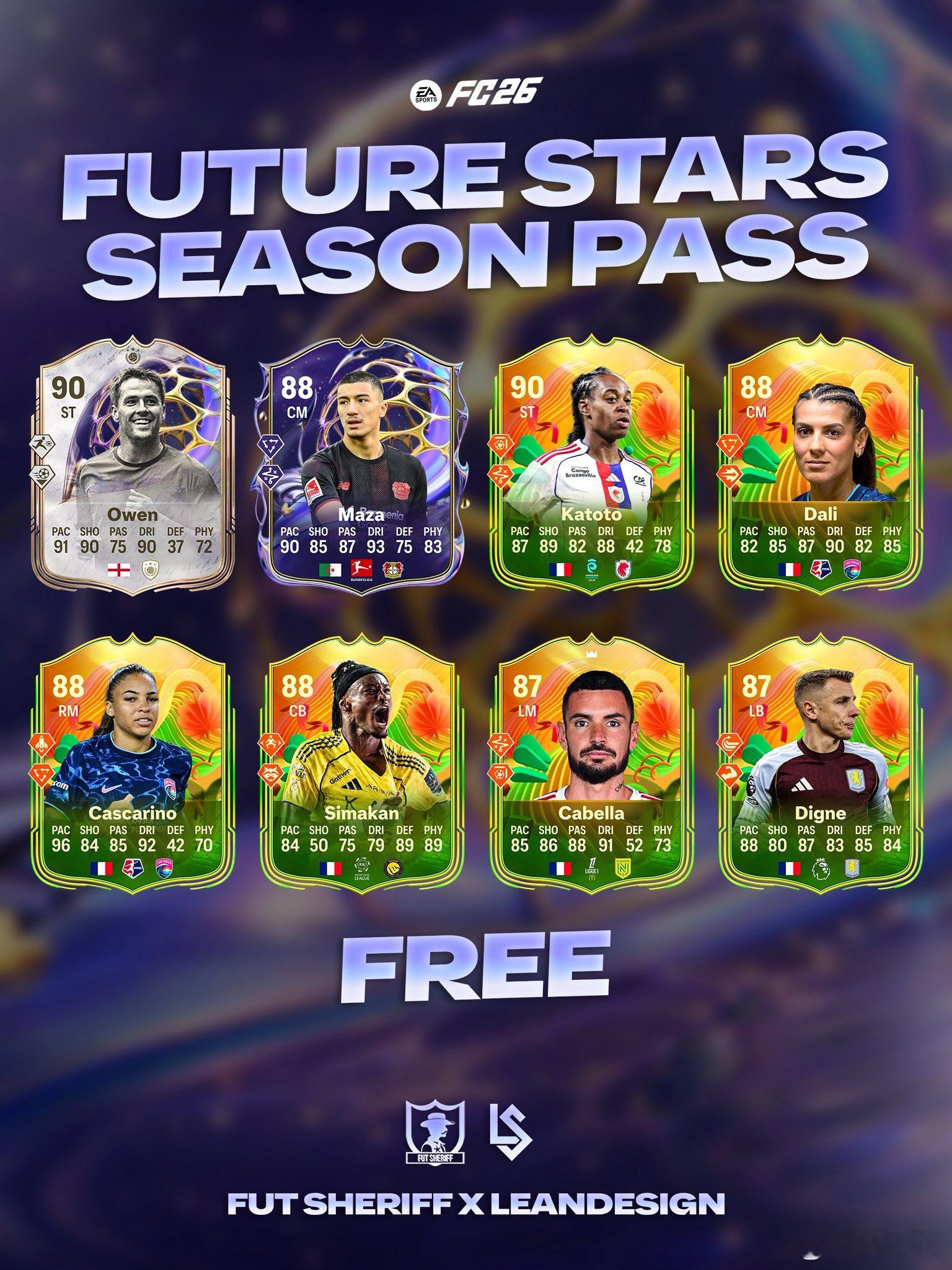 FC26UltimateTeam新赛季通行证奖励球员。数据为预测。FC26