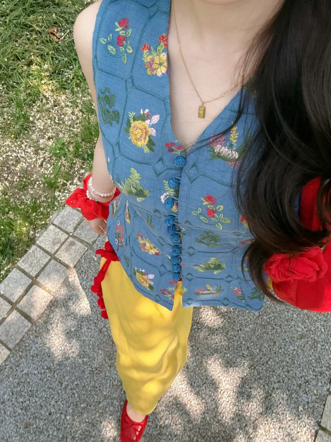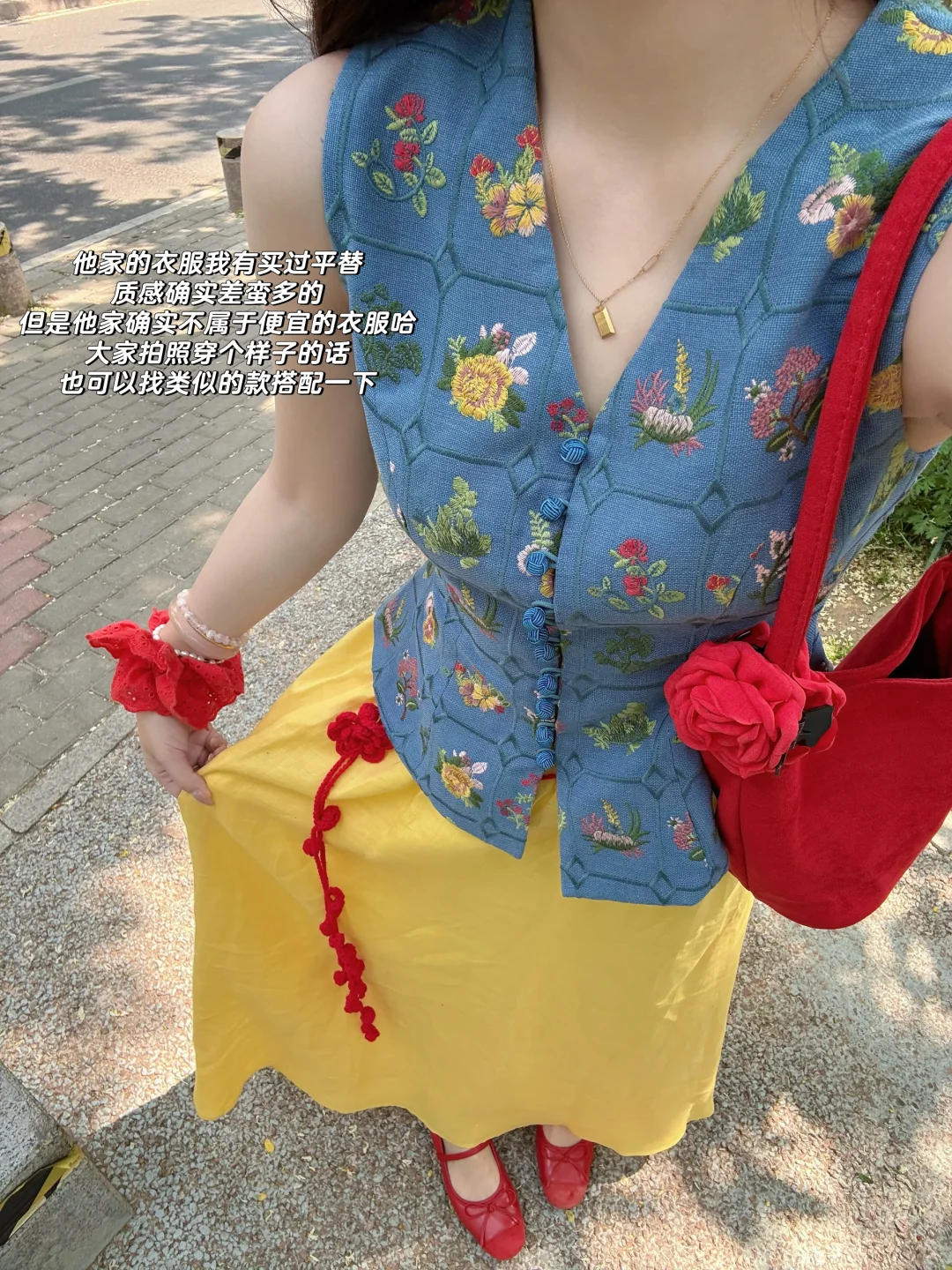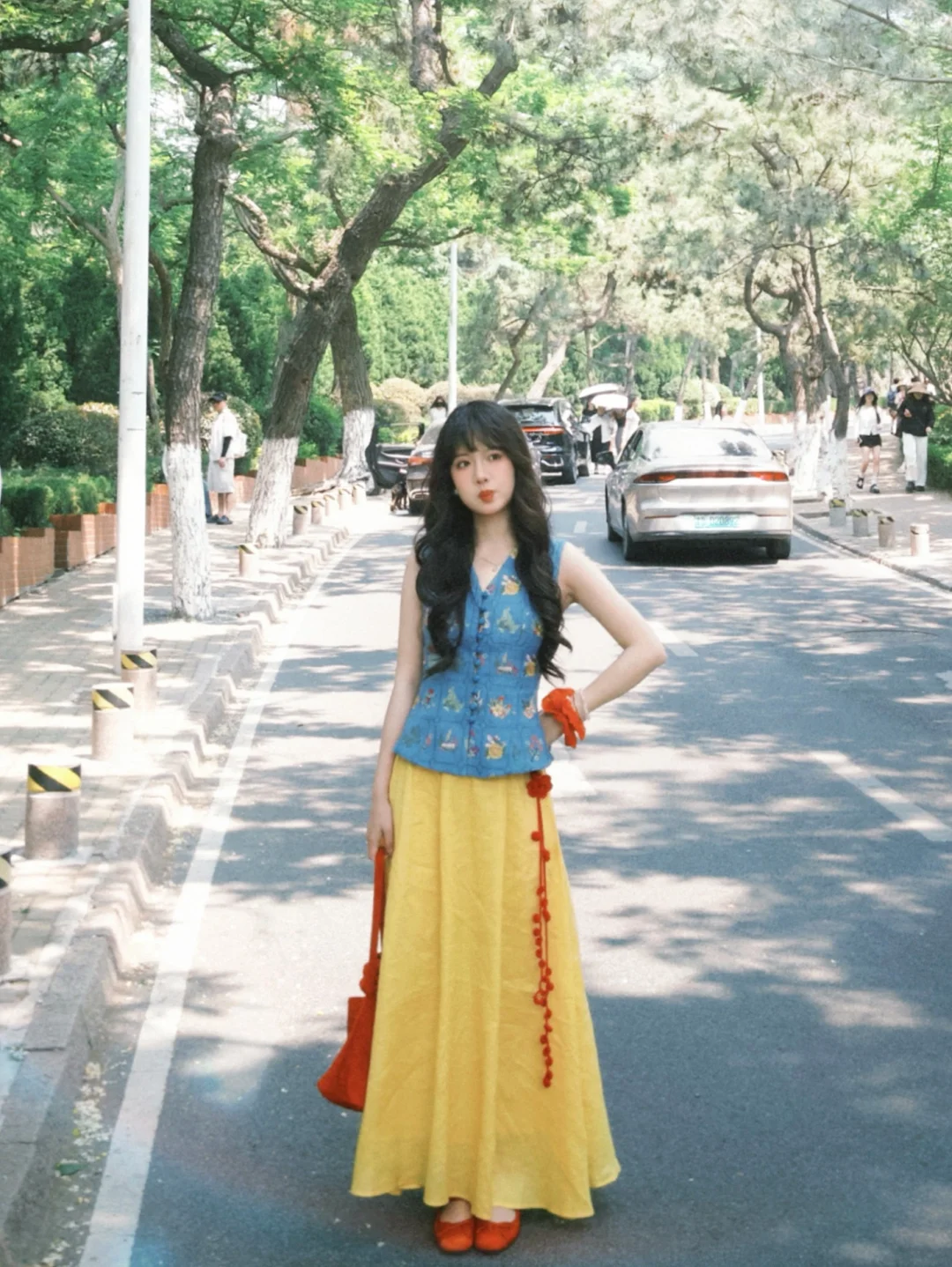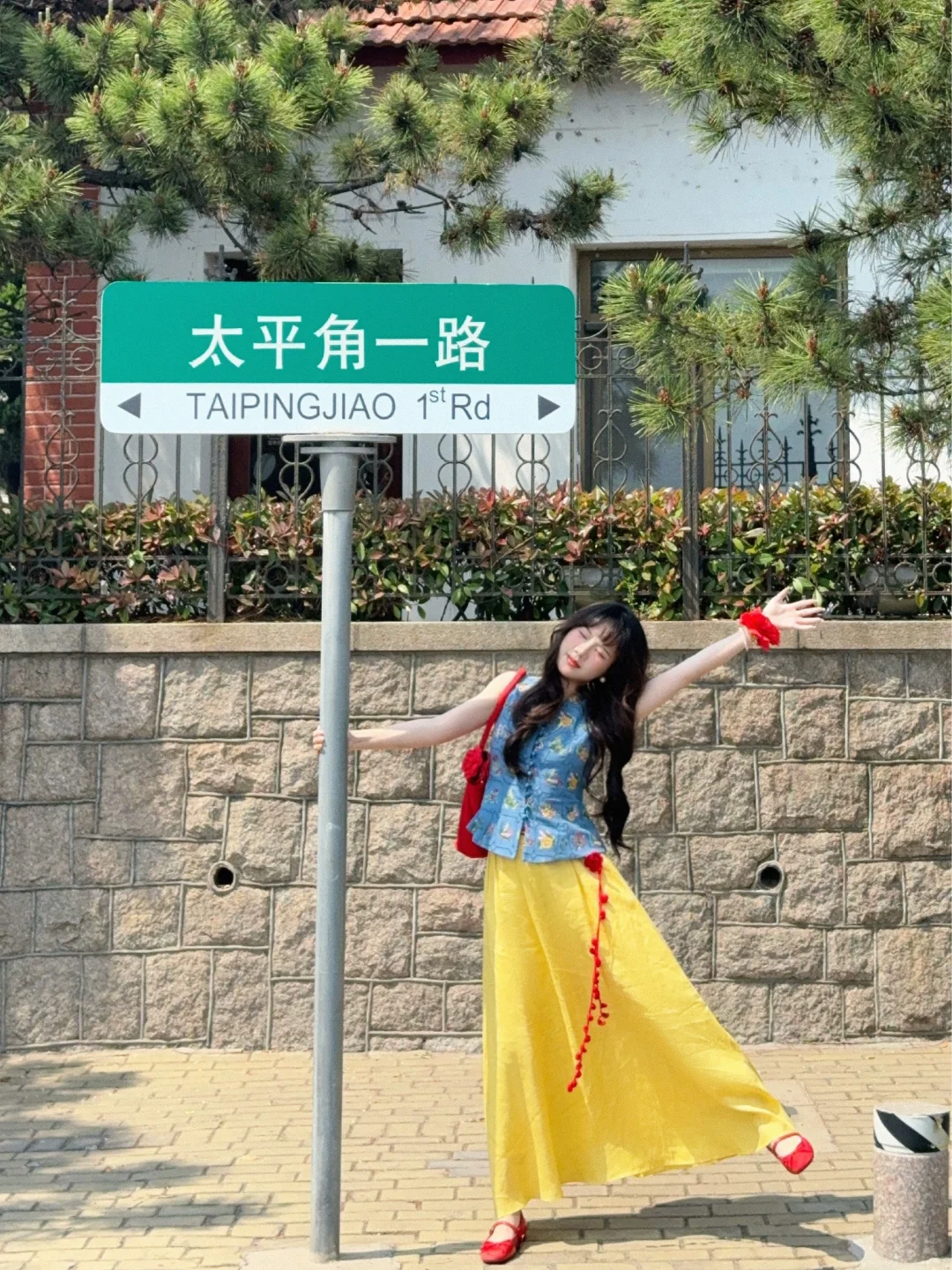 168/106左右 特别适合迪士尼的裙子!!! 完全就是白雪公主既视感 思路打开 大家穿蓝色上衣➕黄裙子➕红鞋➕红色发饰 其实也可以搭配出差不多的效果 这套衣服我感觉也很适合去南法度假 很优雅显瘦的一套 真的非常非常喜欢 官搭就很美丽 不太建议拆开来穿 如果非要分开搭配的话 裙子也可以搭配别的上衣 比如蓝色粉色白色的收腰衬衫 或者亚麻棉麻衬衫之类的 搭配一字肩或者斜肩上衣也不错 拍照地点:📍青岛八大关·太平角公园