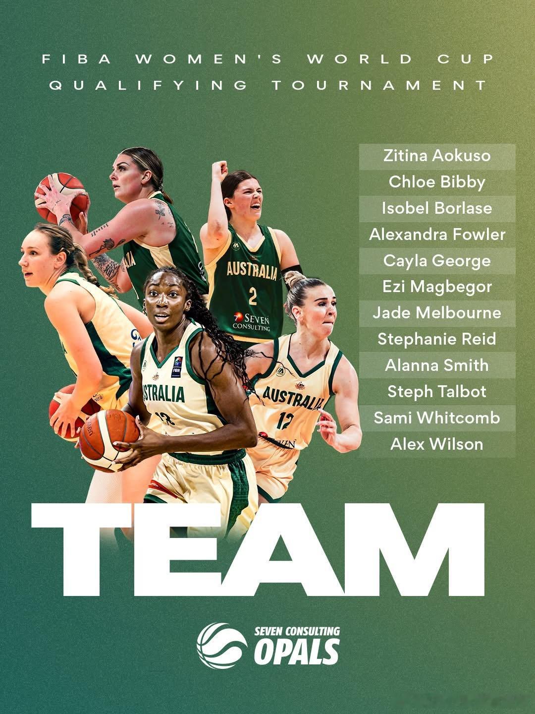 澳大利亚女篮12人阵容出炉他们将参加在土耳其伊斯坦布尔举行的世界杯女篮资格赛,时间是3/11-3/17阿库索- WNBL UC首都毕比- 西甲女篮波拉丝- WNBL班迪戈弗勒- WNBL汤斯维尔凯拉乔治- WNBL南岸飞人麦贝格- WNBA西雅图风暴墨尔本- WNBL UC首都赖德- WCBA广东史密斯- WNBA明尼苏达山猫陶伯特- WNBL阿德莱德惠特康- 土耳其球队威尔逊- WNBL珀斯山猫中国女篮女篮世界杯亚洲篮球